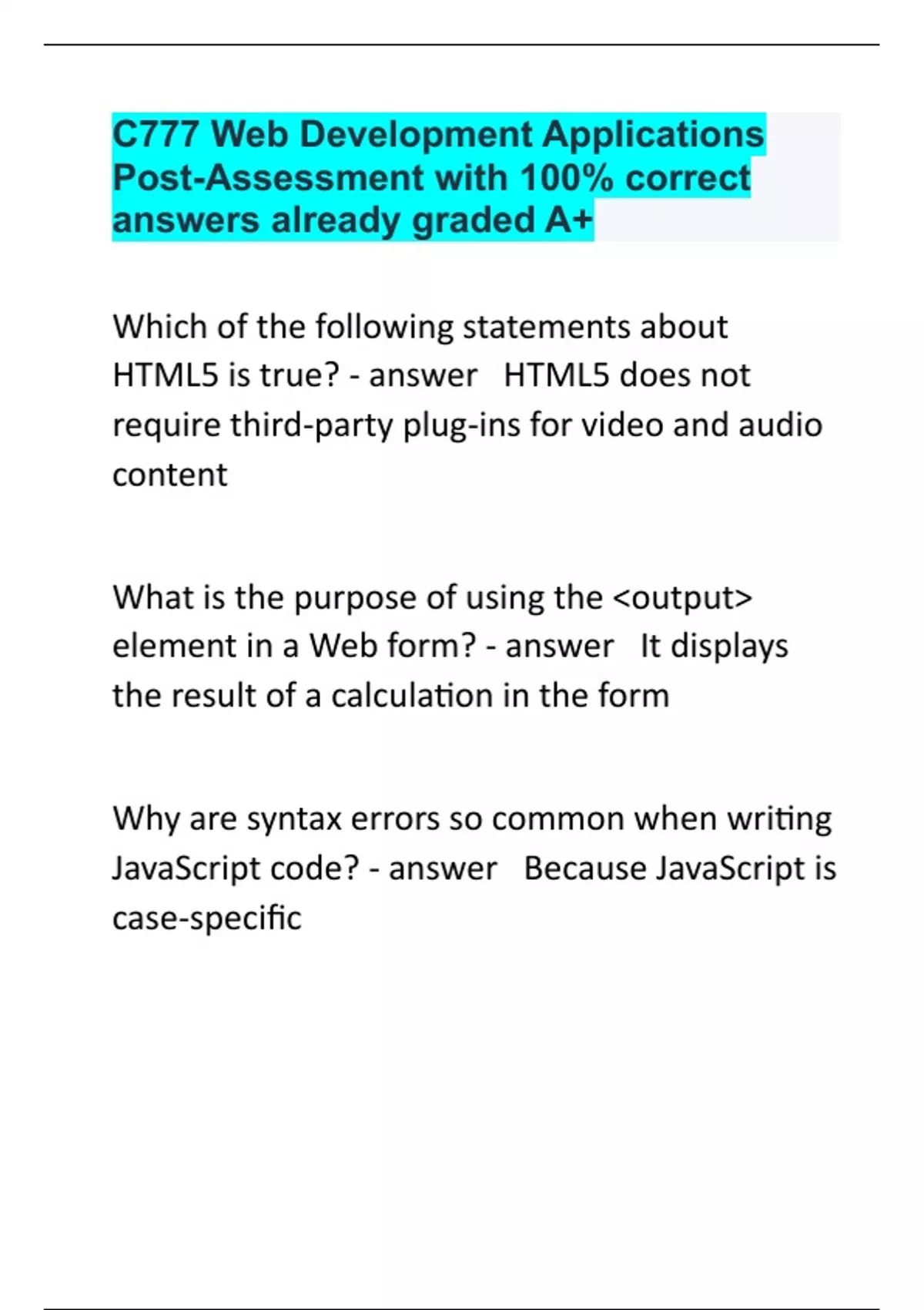 C777 Web Development Applications Post-Assessment with 100% correct answers already graded A+