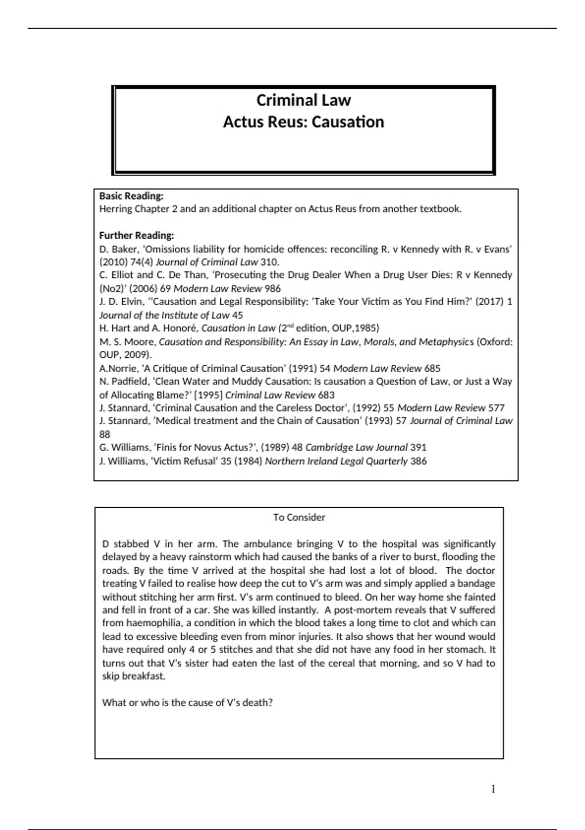 Herring Chapter 2 and an additional chapter on Actus Reus from another textbook.