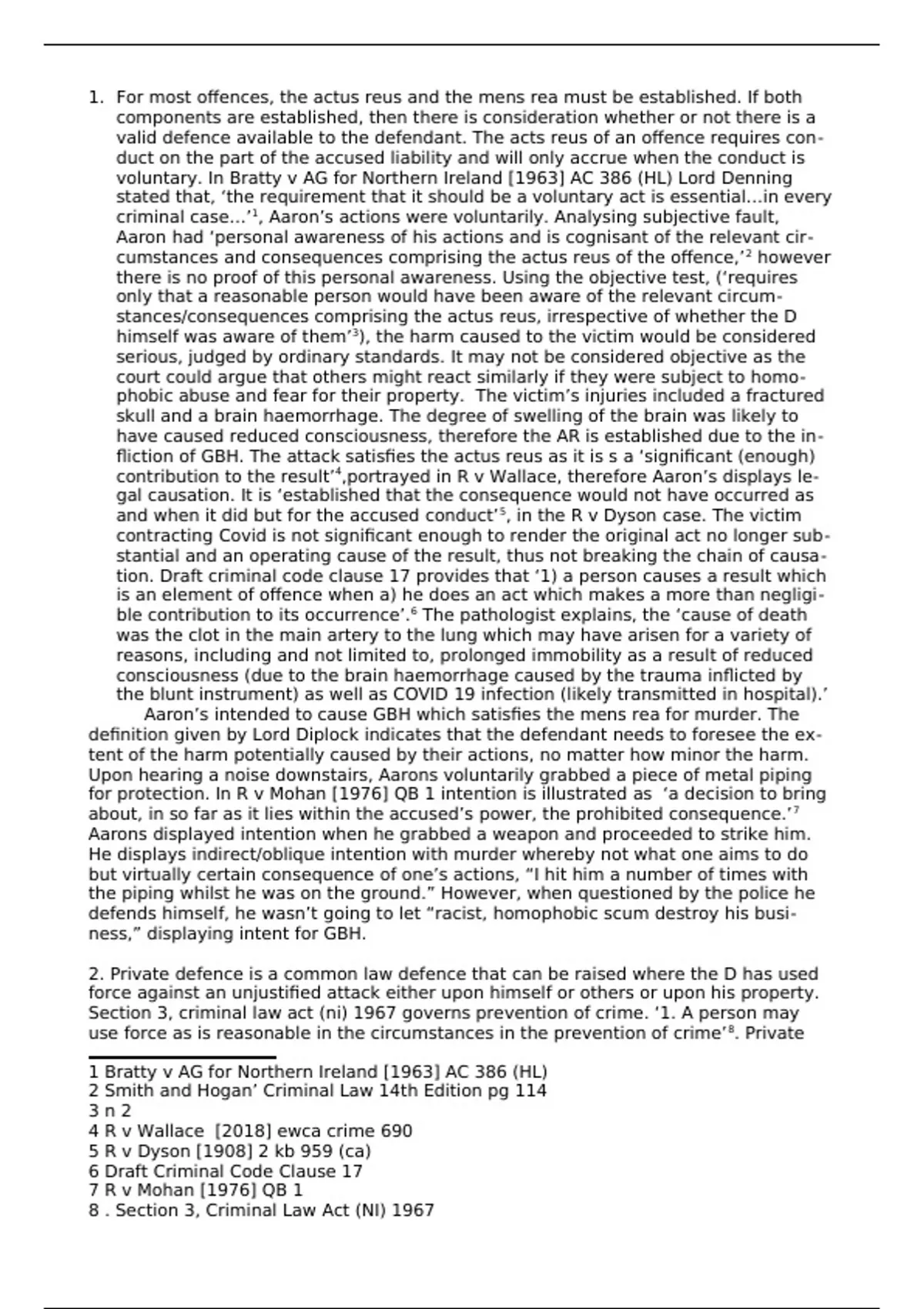 criminal case…’1, Aaron’s actions were voluntarily. Analysing subjective fault,