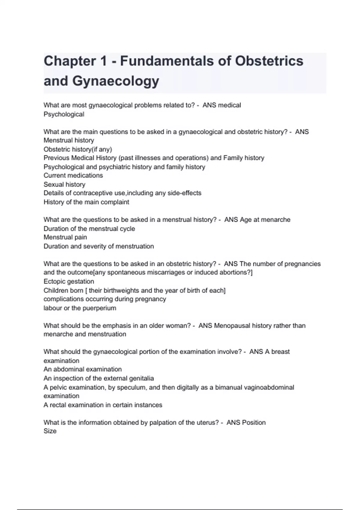 Chapter 1 - Fundamentals of Obstetrics and Gynaecology Exam Questions and Answers 2024( A+ GRADED 100% VERIFIED).