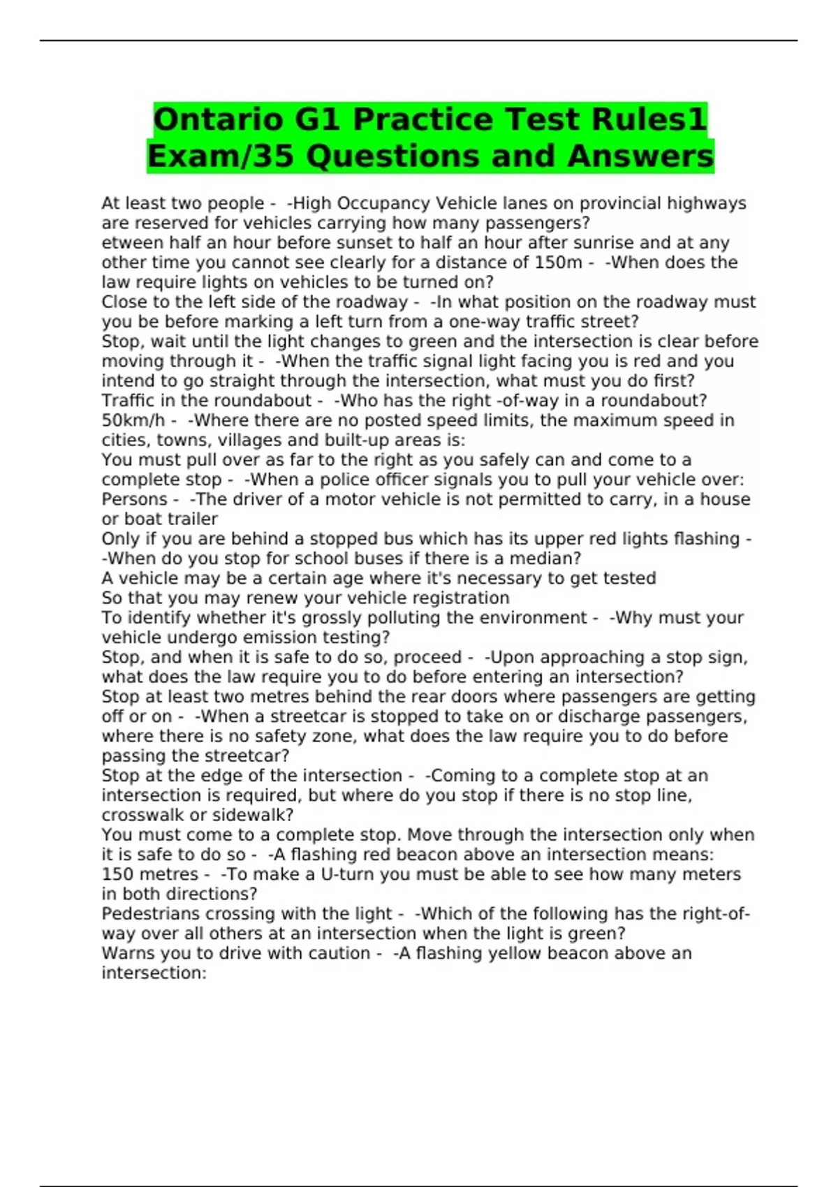 Ontario G1 Practice Test Rules1 Exam/35 Questions and Answers