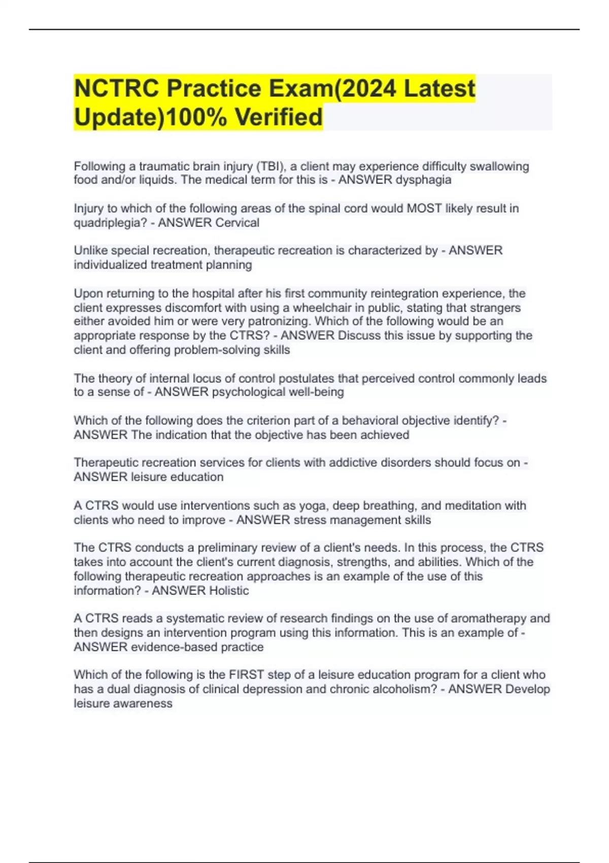 NCTRC Practice Exam(2024 Latest Update)100% Verified
