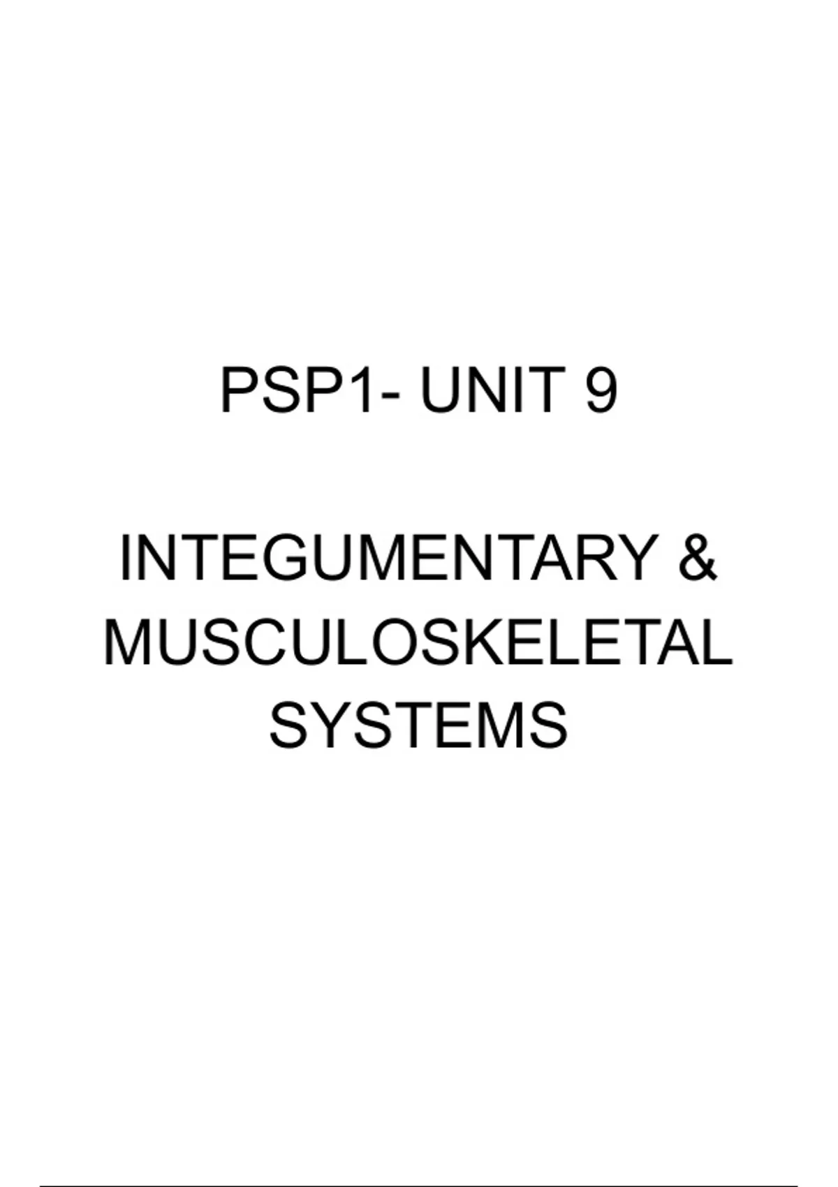 Summarised notes from reading packs and lecture slides on the skin and muscoskeletal system. Each section is organised according to the dofferent diseases and treatment options required for it. Bullet pointed notes for an easy read
