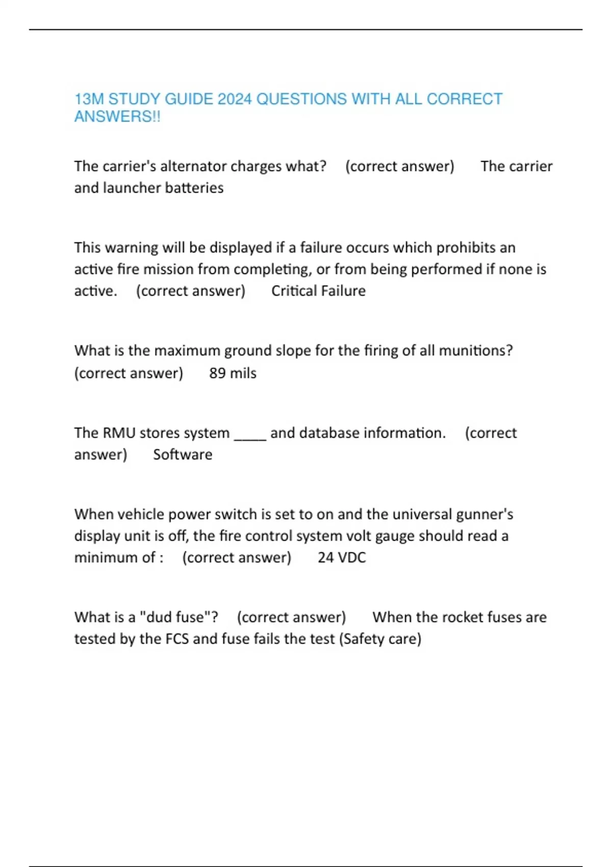 13M STUDY GUIDE 2024 QUESTIONS WITH ALL CORRECT ANSWERS!!