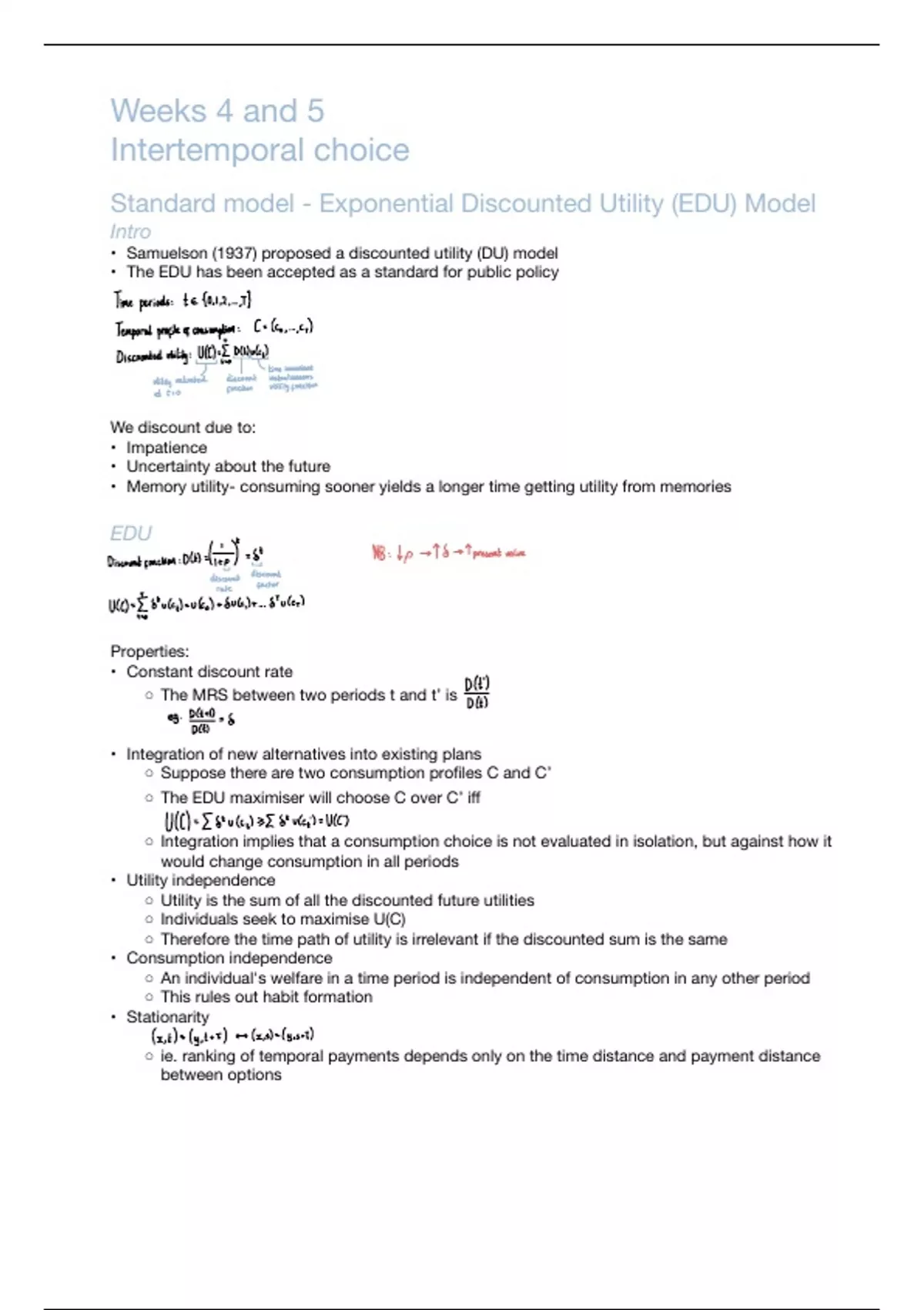◦ Therefore the time path of utility is irrelevant if the discounted sum is the same