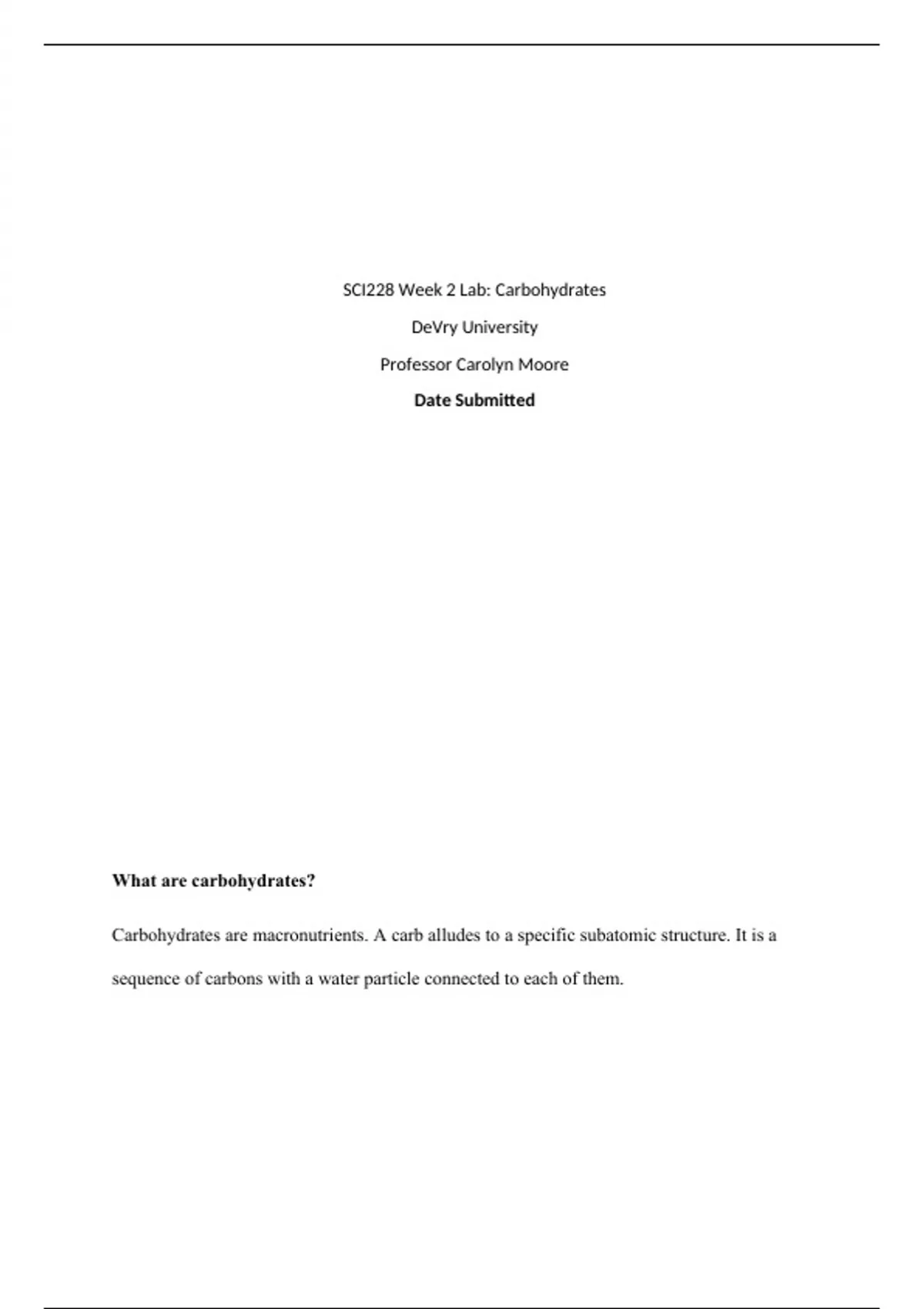 SCI228 Week 2 Lab: Carbohydrates