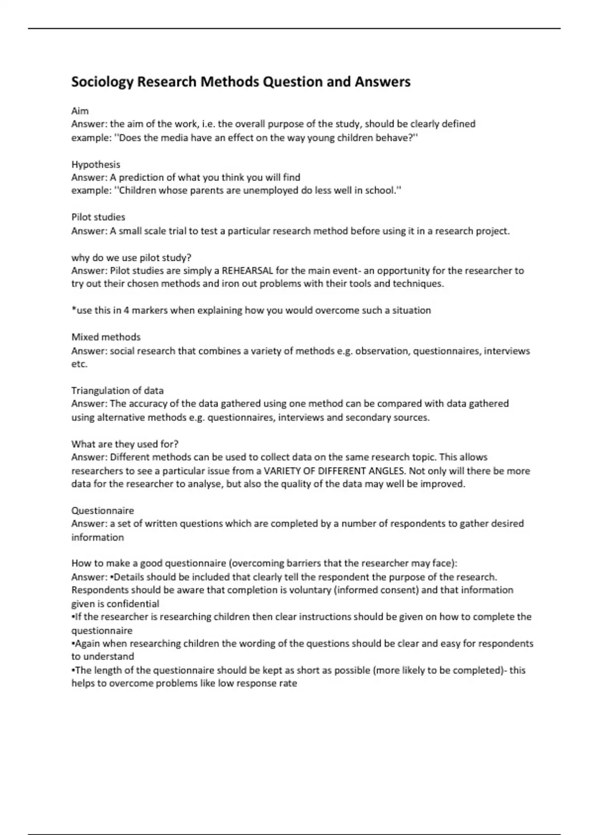 sociology research revision exam test