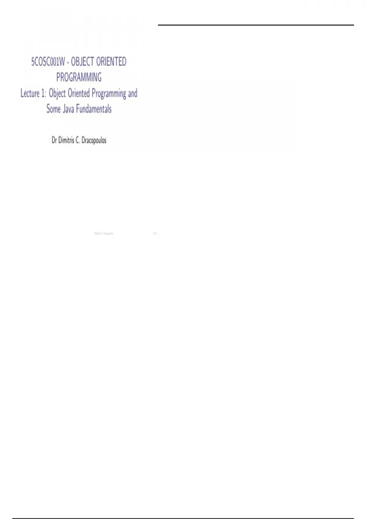 Lecture 1: Object Oriented Programming and