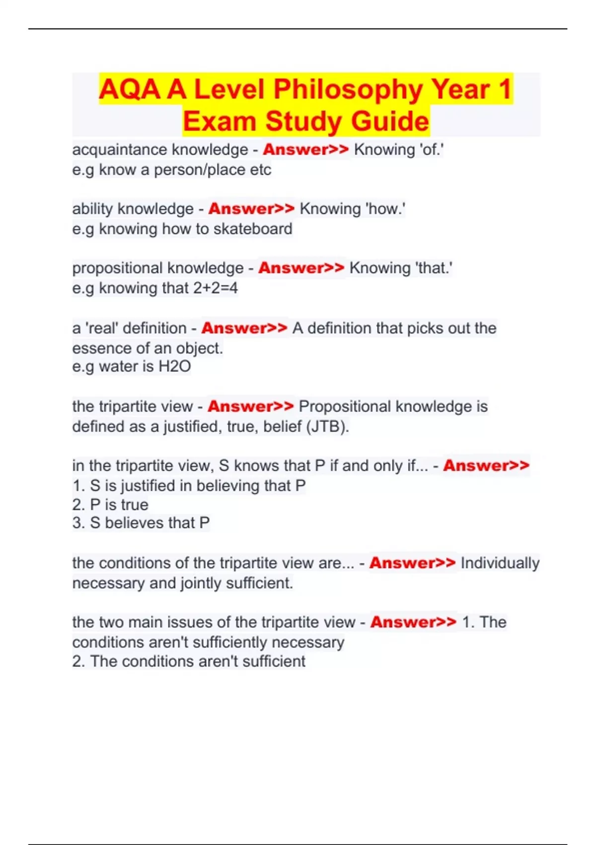 the conditions of the tripartite view are... - Answer>> Individually