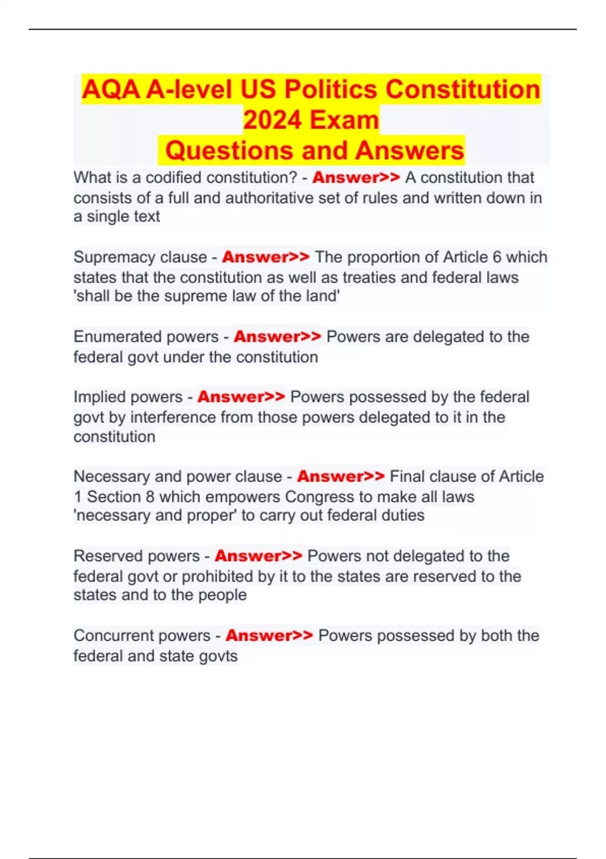 AQA A-level US Politics Constitution 2024 Exam Questions and Answers