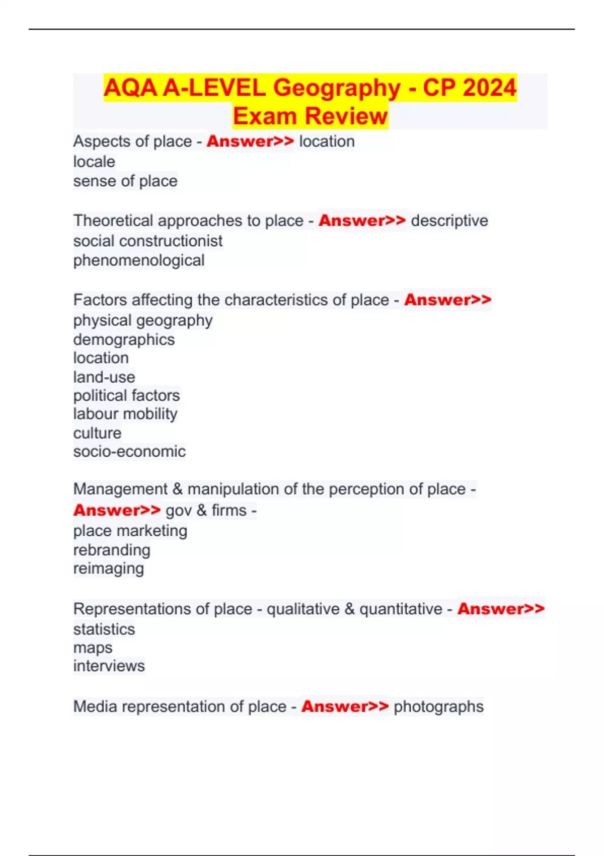 Representations of place - qualitative & quantitative - Answer>>