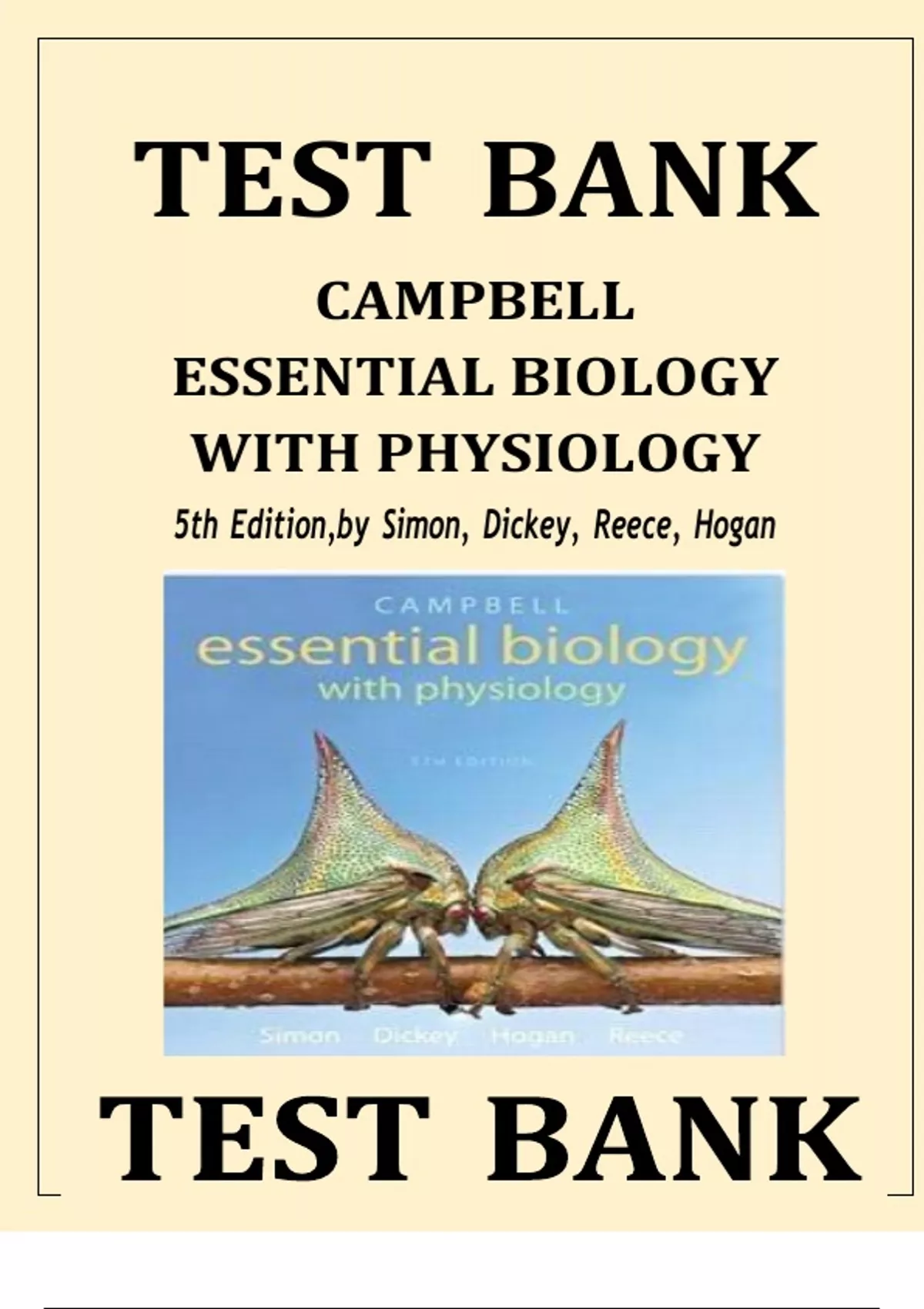 TEST BANK For Campbell Essential Biology, 7th Edition, Eric J. Simon, Jean L. Dickey,| Verified Chapter's 1 - 29 | Complete Newest Version TEST BANK For Campbell Essential Biology, 7th Edition, Eric J. Simon, Jean L. Dickey,| Verified Chapter's 1 - 29 | Complete Newest Version