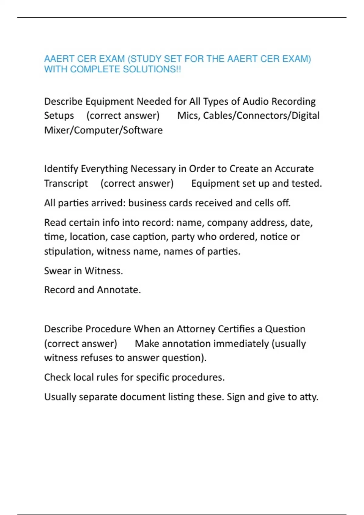 AAERT CER EXAM (STUDY SET FOR THE AAERT CER EXAM) WITH COMPLETE SOLUTIONS!!