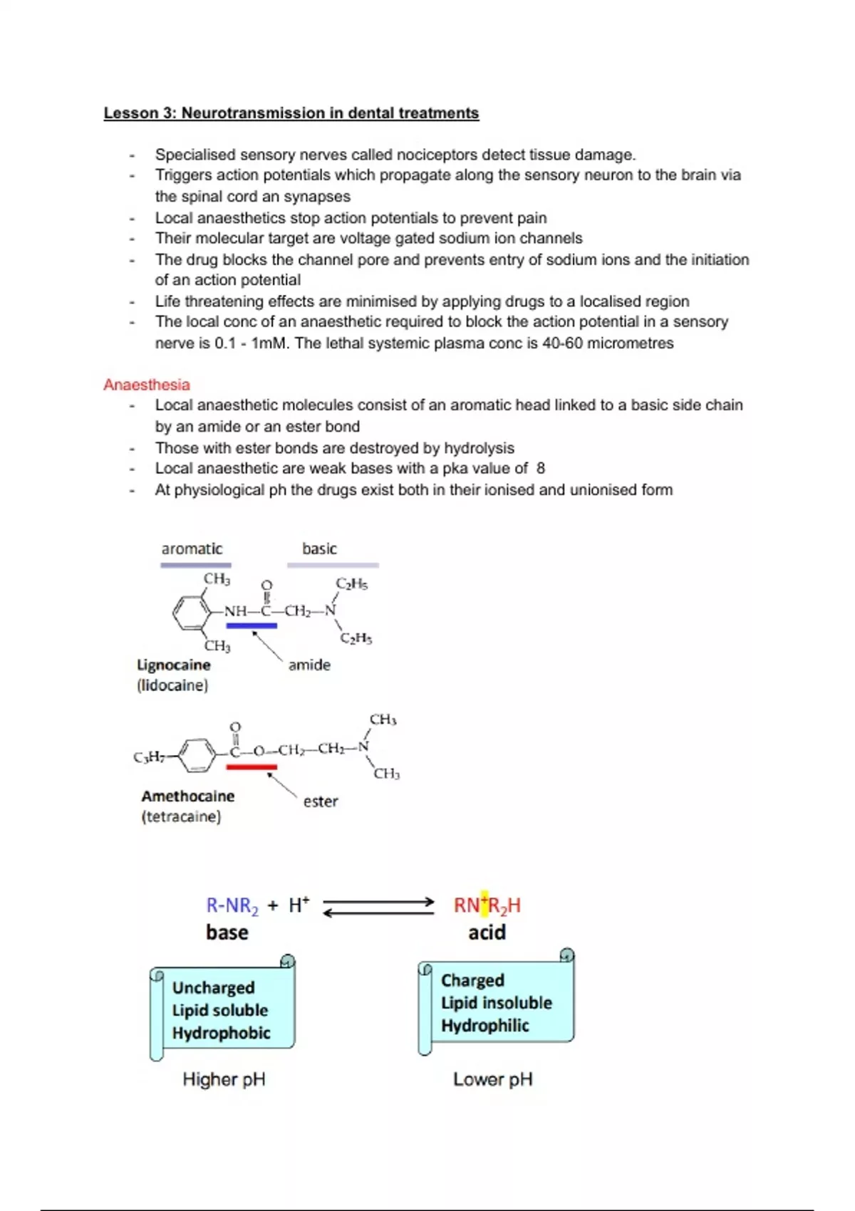 - Local anaesthetic molecules consist of an aromatic head linked to a basic side chain