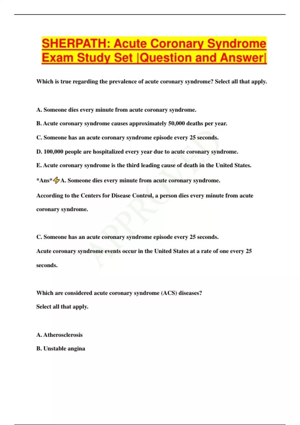 SHERPATH: Acute Coronary Syndrome Exam Study Set |Question and Answer|