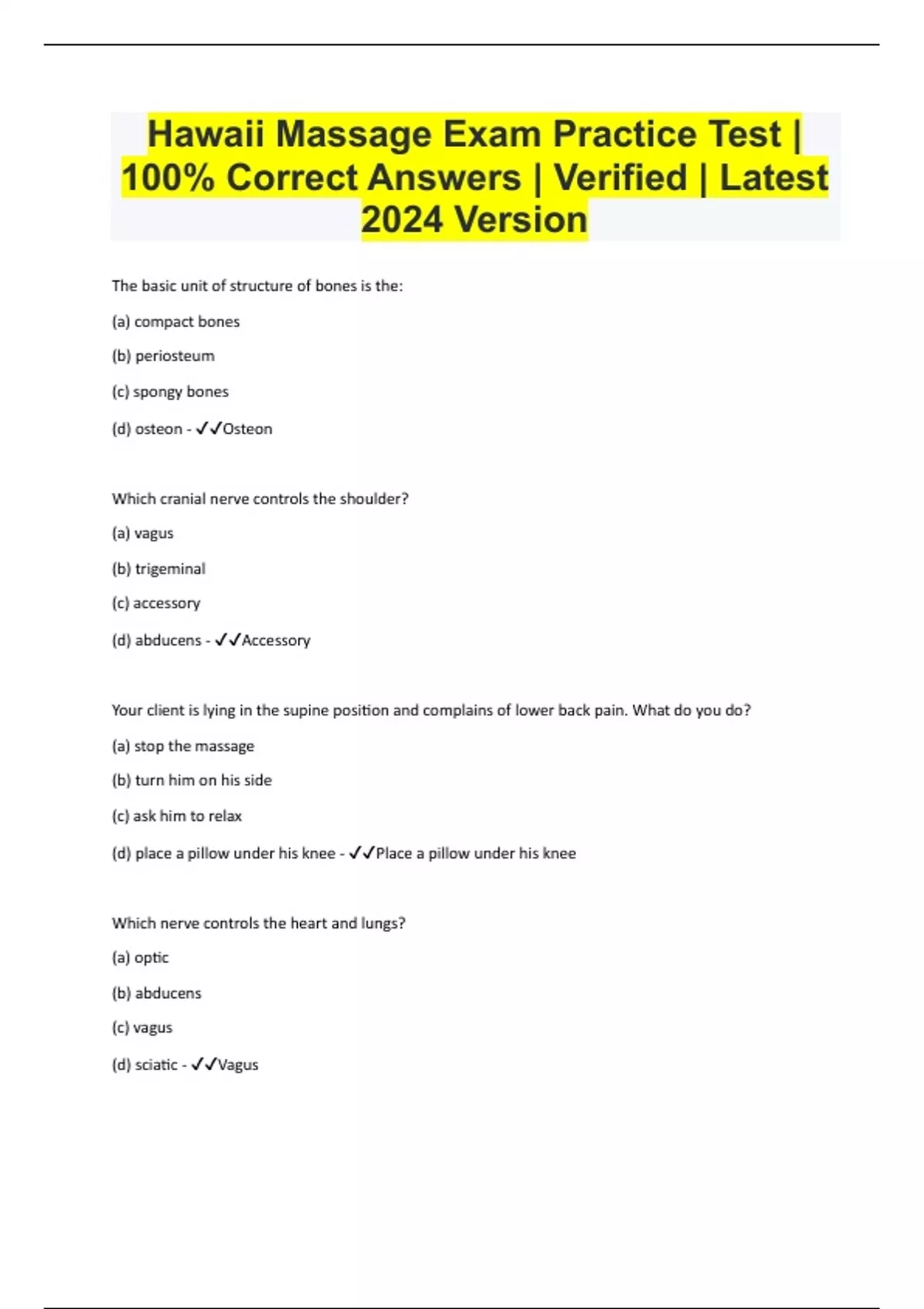 Hawaii Massage Exam Practice Test | 100% Correct Answers | Verified | Latest 2024 Version