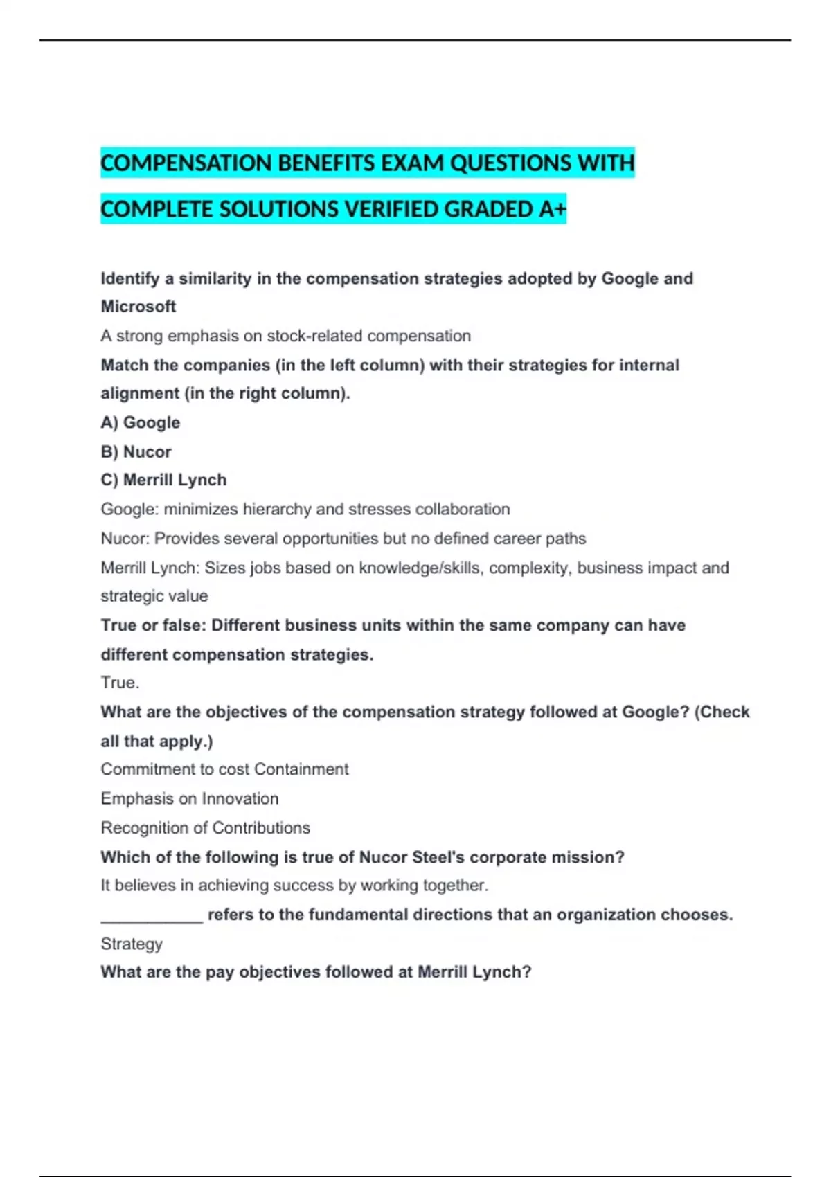 Identify a true statement about the compensation strategy at Google.