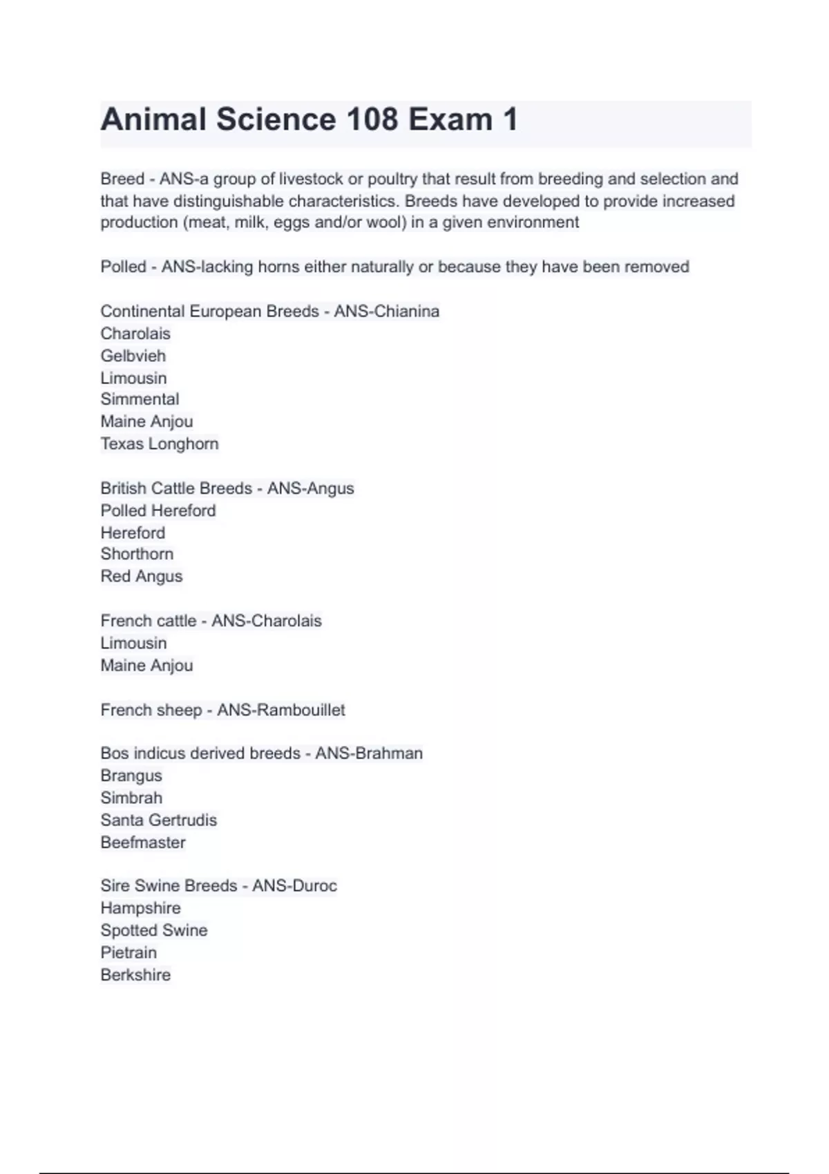 Animal Science 108 Exam 1