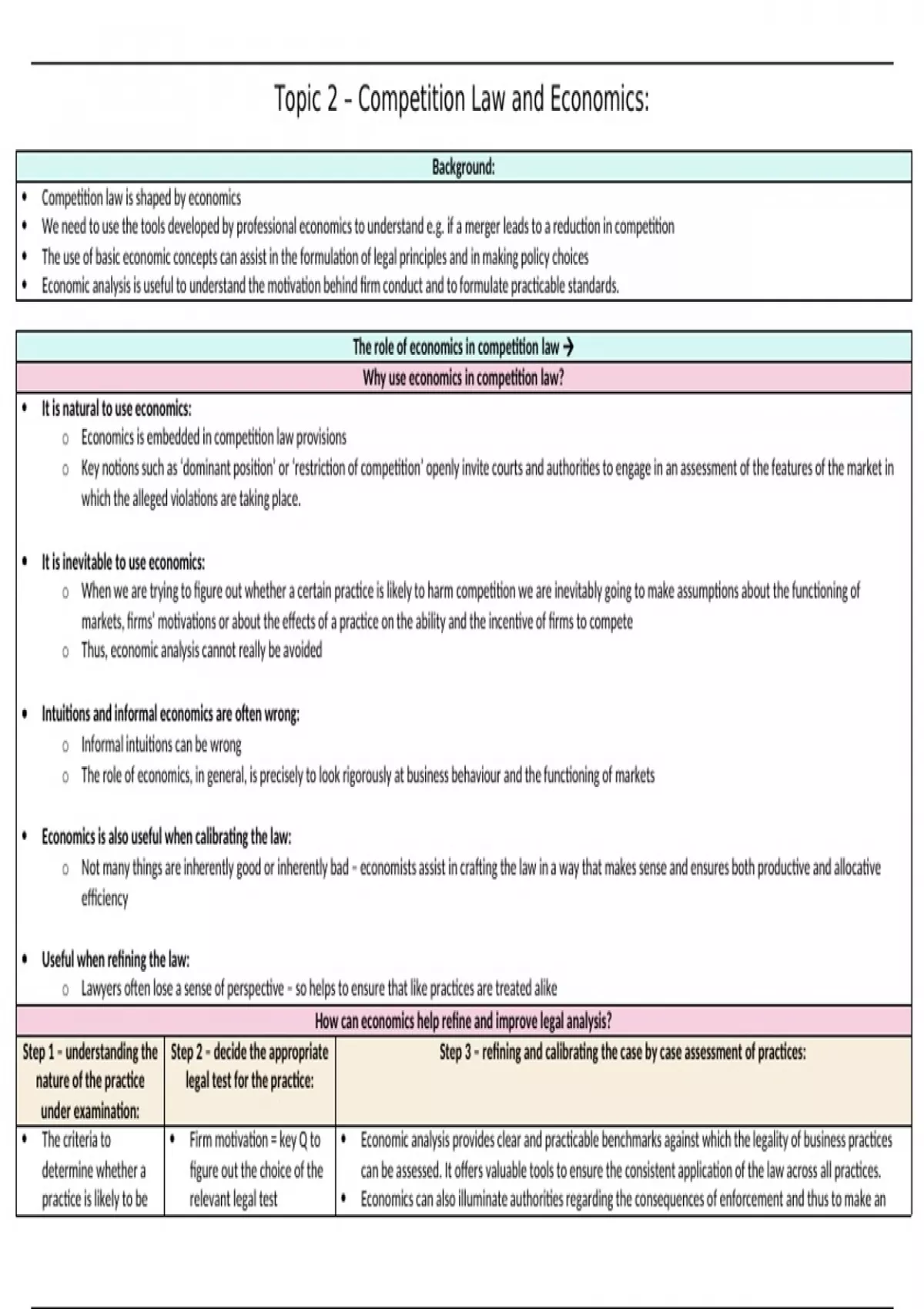 practice is likely to be relevant legal test Economics can also illuminate authorities regarding the consequences of enforcement and thus to make an