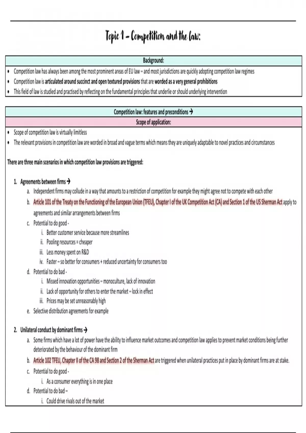 • Competition law is a legal regime that aims to preserve firms’ ability and incentive to rival one another in the marketplace and competition law wants to ensure that the