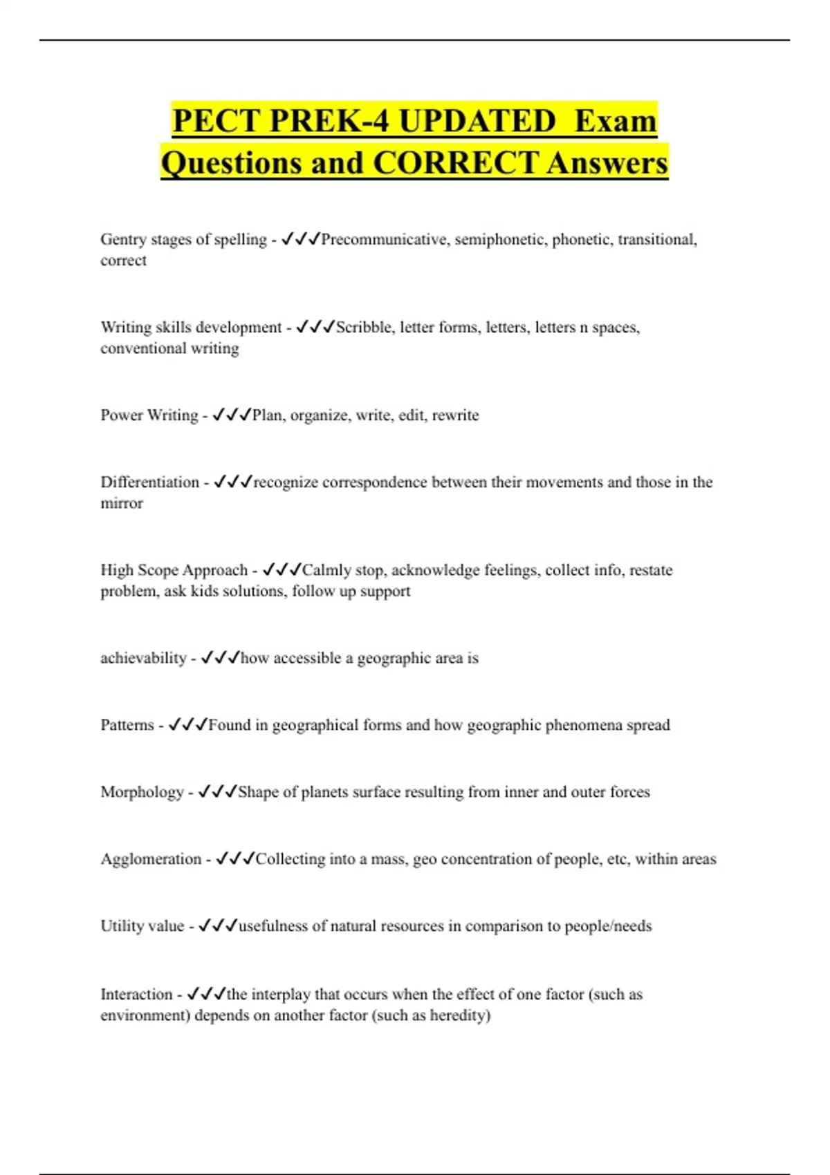 PECT PREK-4 UPDATED Exam Questions and CORRECT Answers