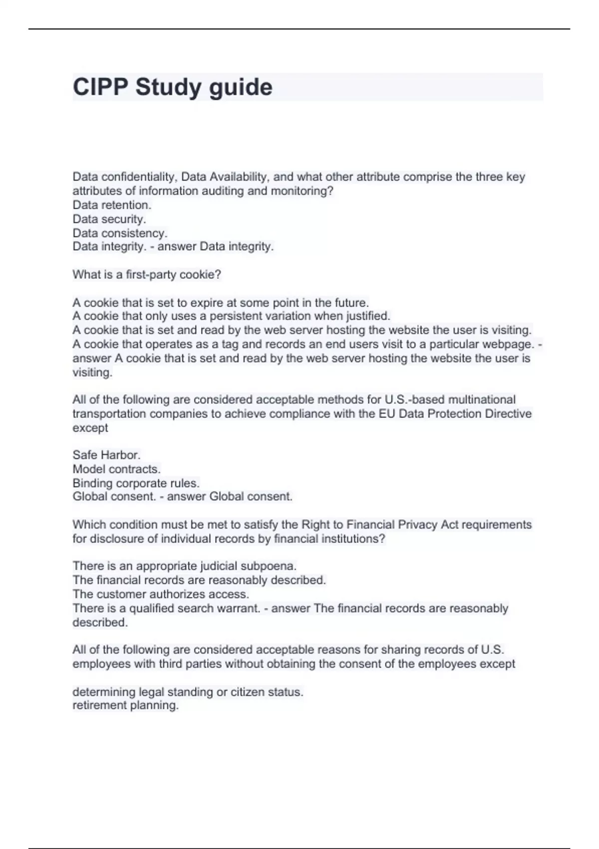 Exam of 15 pages for the course CIPP at CIPP (CIPP Study guide)