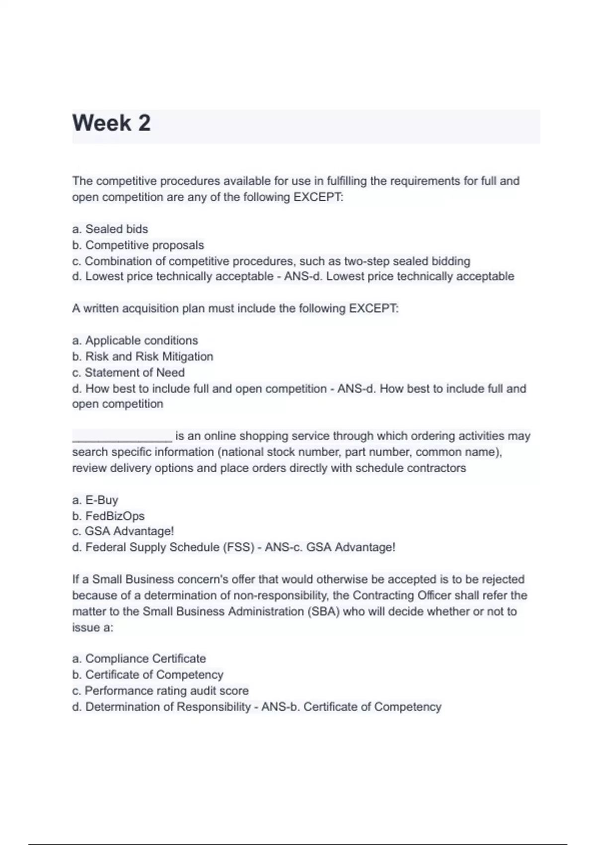 d. Lowest price technically acceptable - ANS-d. Lowest price technically acceptable