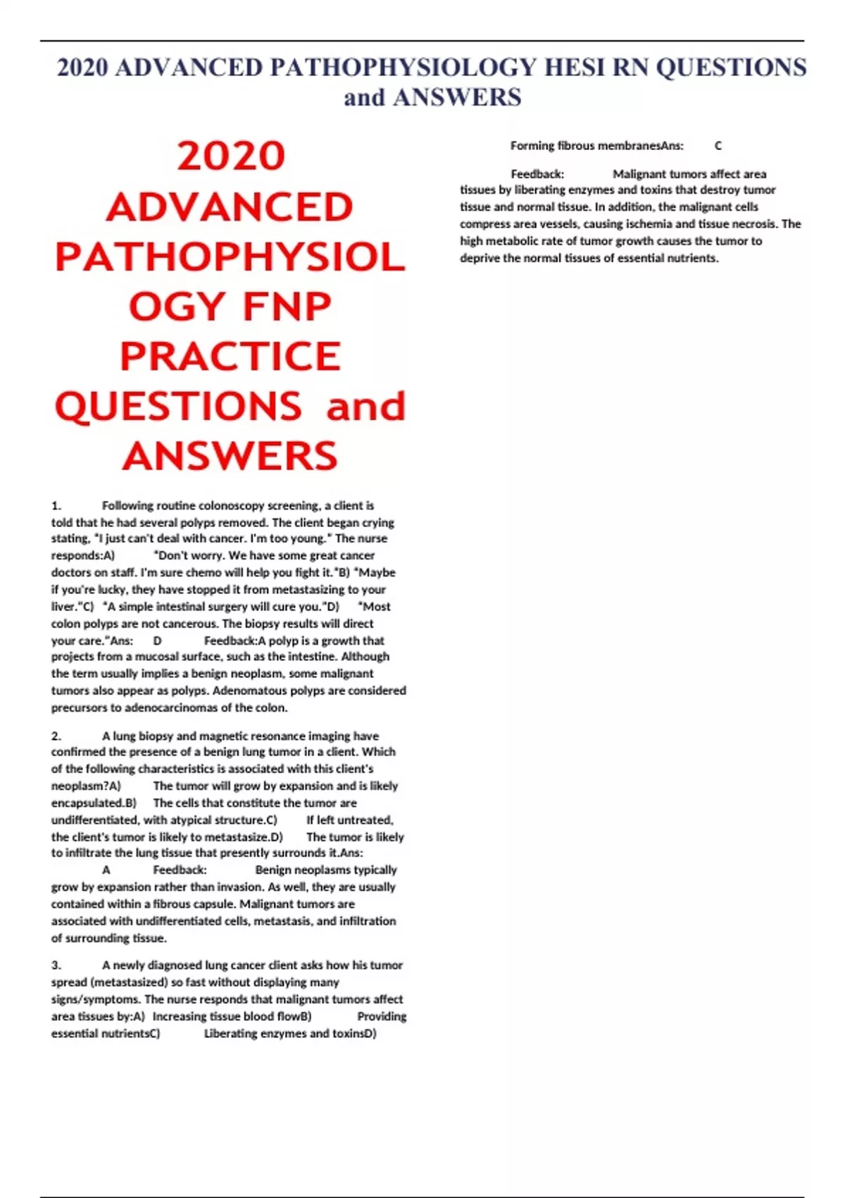 2020 ADVANCED PATHOPHYSIOLOGY HESI RN QUESTIONS and ANSWERS