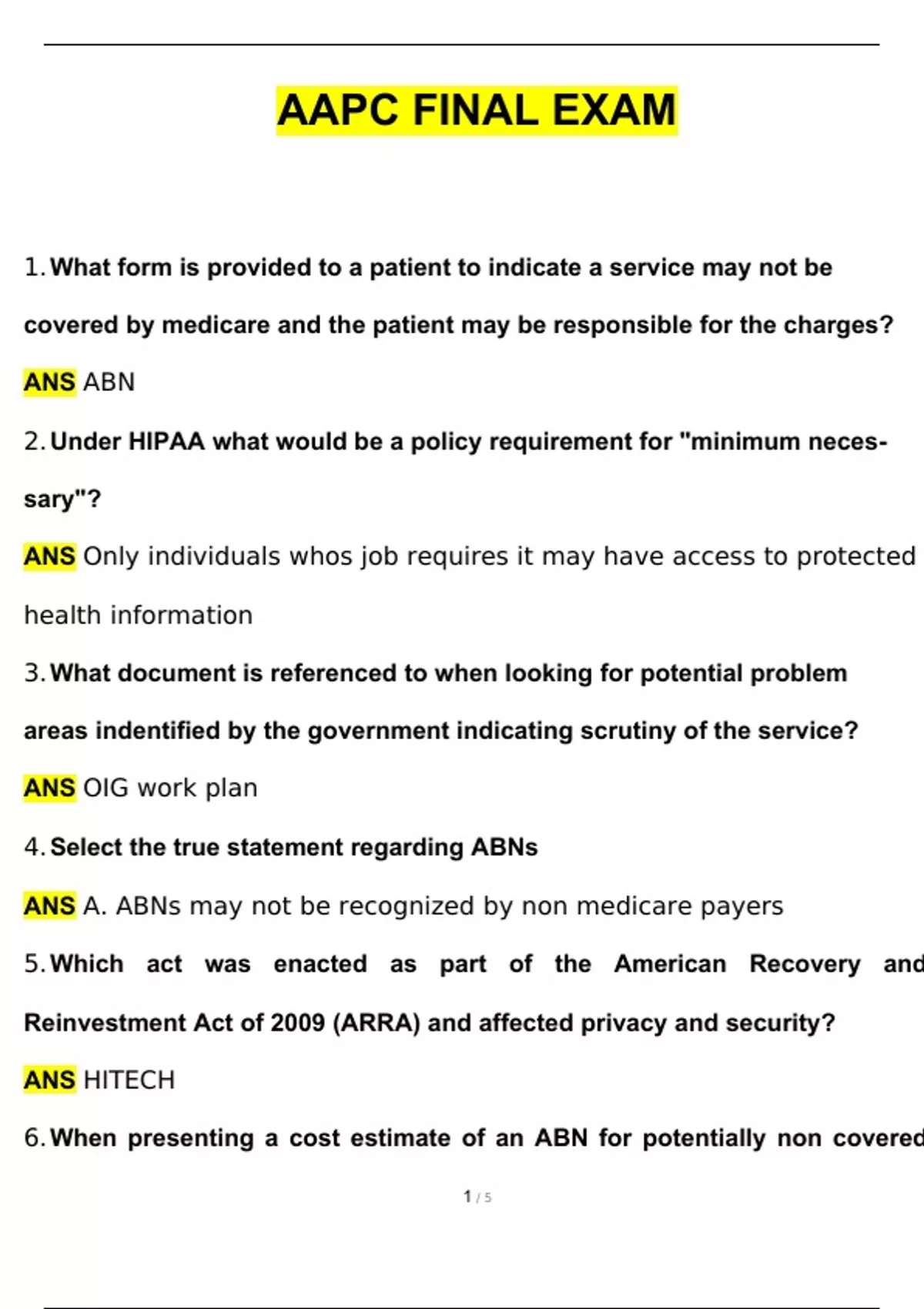 AAPC FINAL EXAM Questions and Answers (2024 / 2025) Updated Latest (Verified Answers)