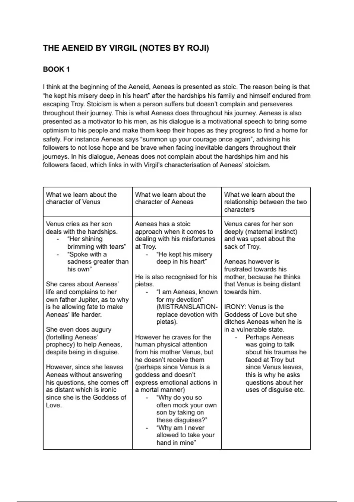 character of Venus character of Aeneas relationship between the two