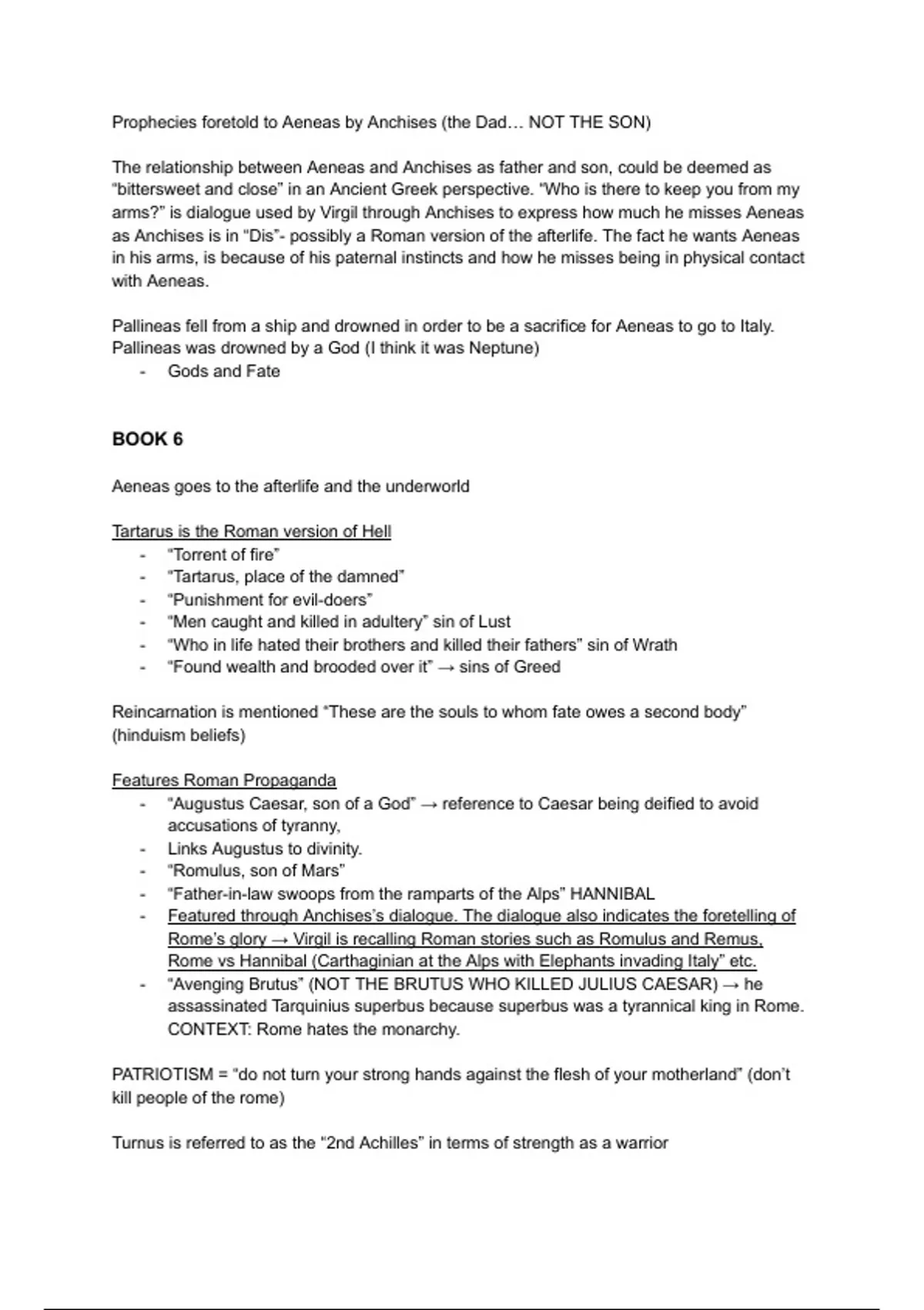 Summary Book 5 & 6 of the Aeneid- (A Level OCR Classical Civilisation Notes)