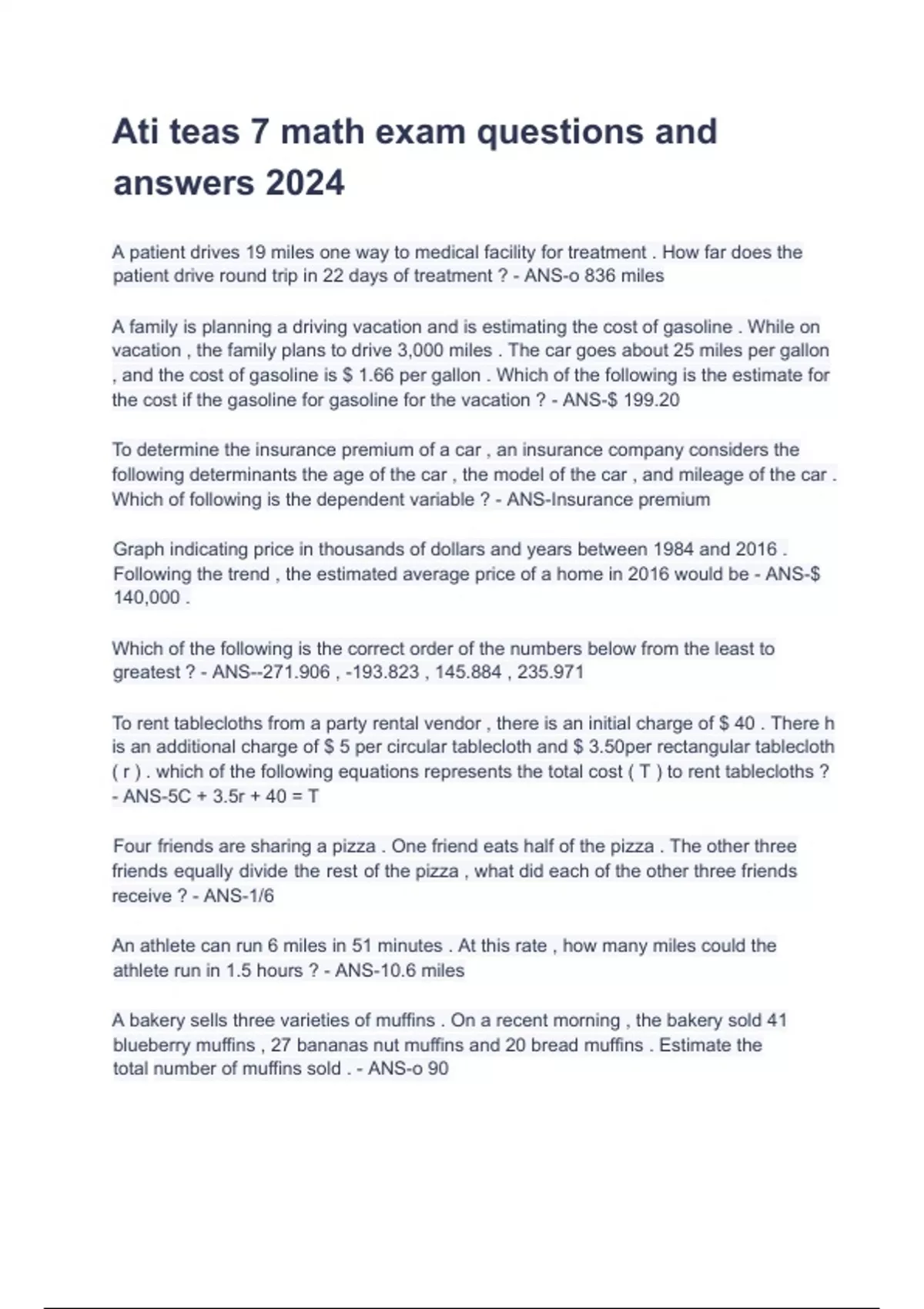 Ati teas 7 math exam questions and