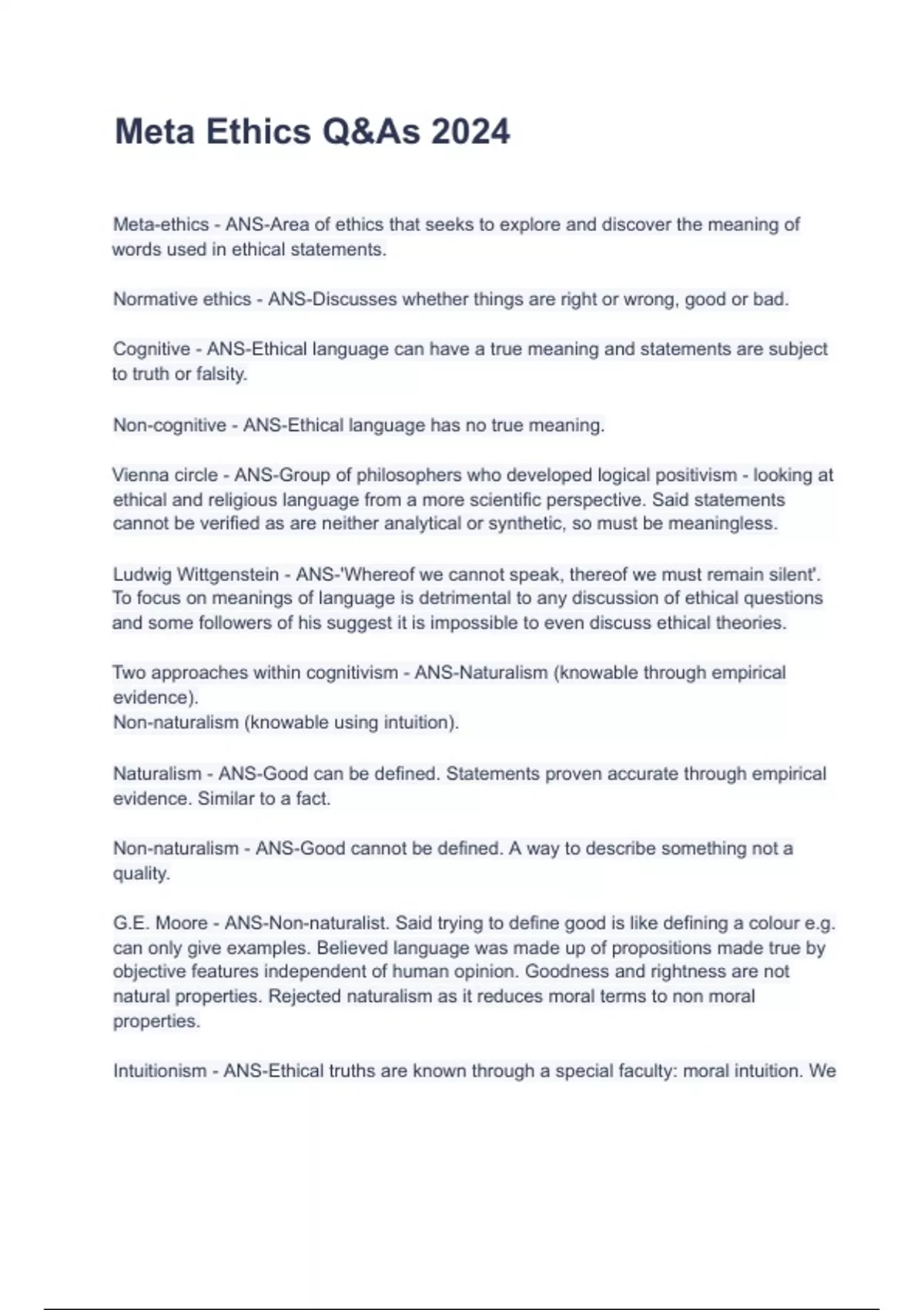 Cognitive - ANS-Ethical language can have a true meaning and statements are subject