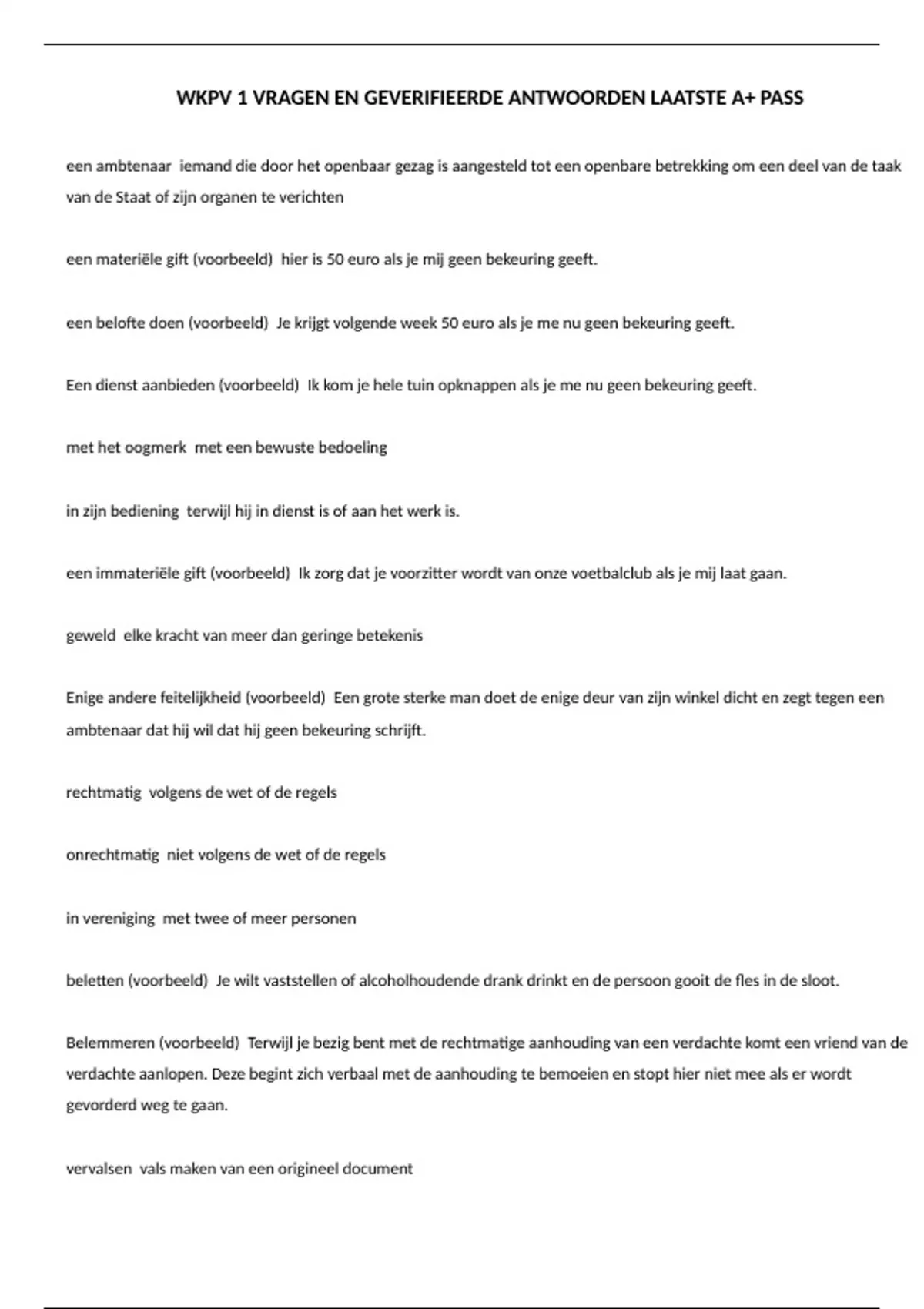een materiële gift (voorbeeld) 🗸 hier is 50 euro als je mij geen bekeuring geeft.