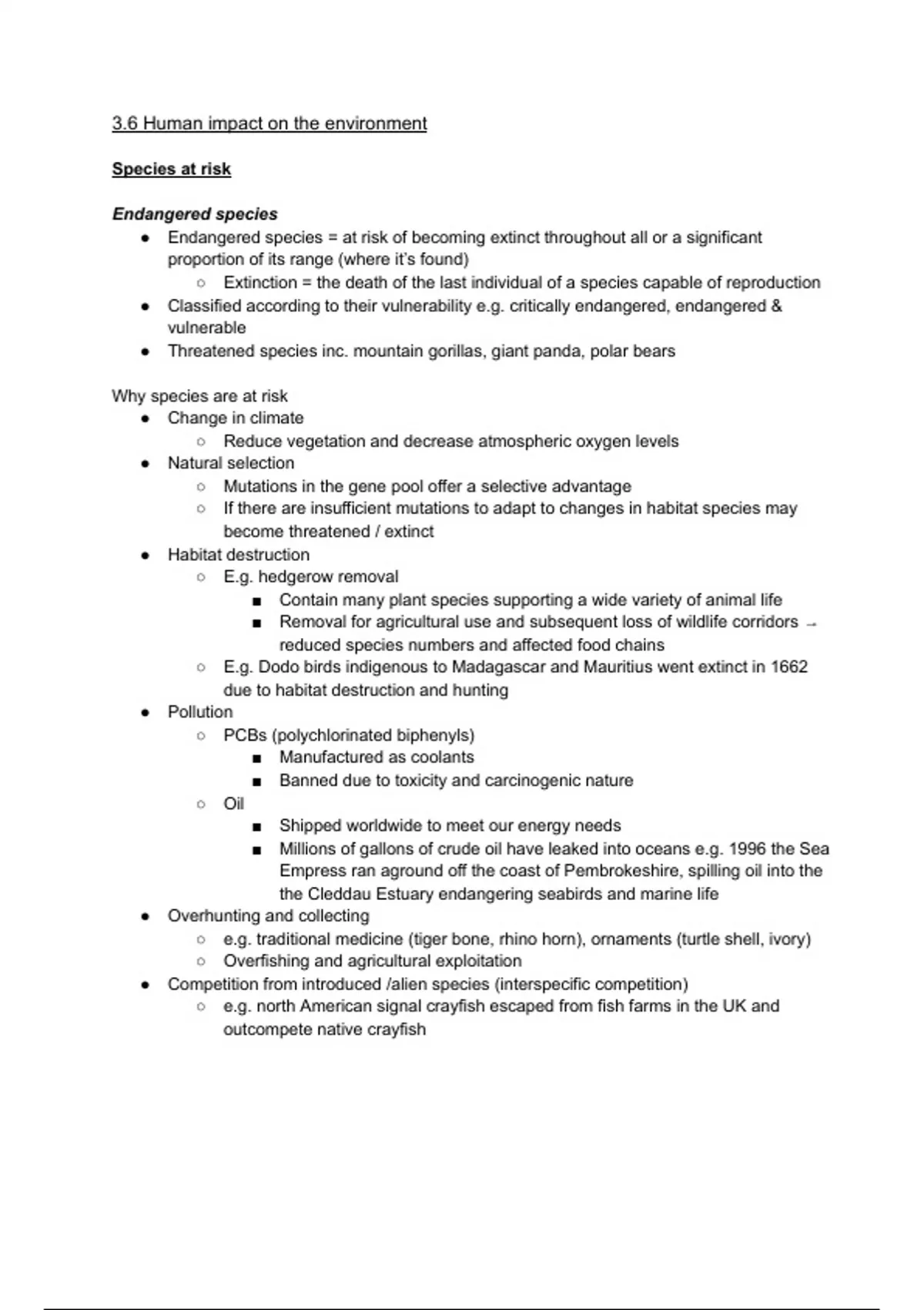 Biology A2 level 3.6 Human impact on the environment. These notes were formulated using class notes, the WJEC study guide and past papers. These notes helped me to achieve an A* at A level biology!
