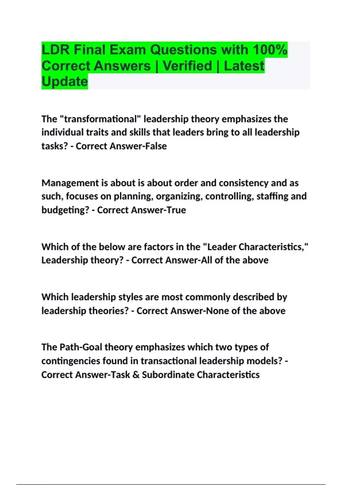 ldr final exam questions with 100 correct answers