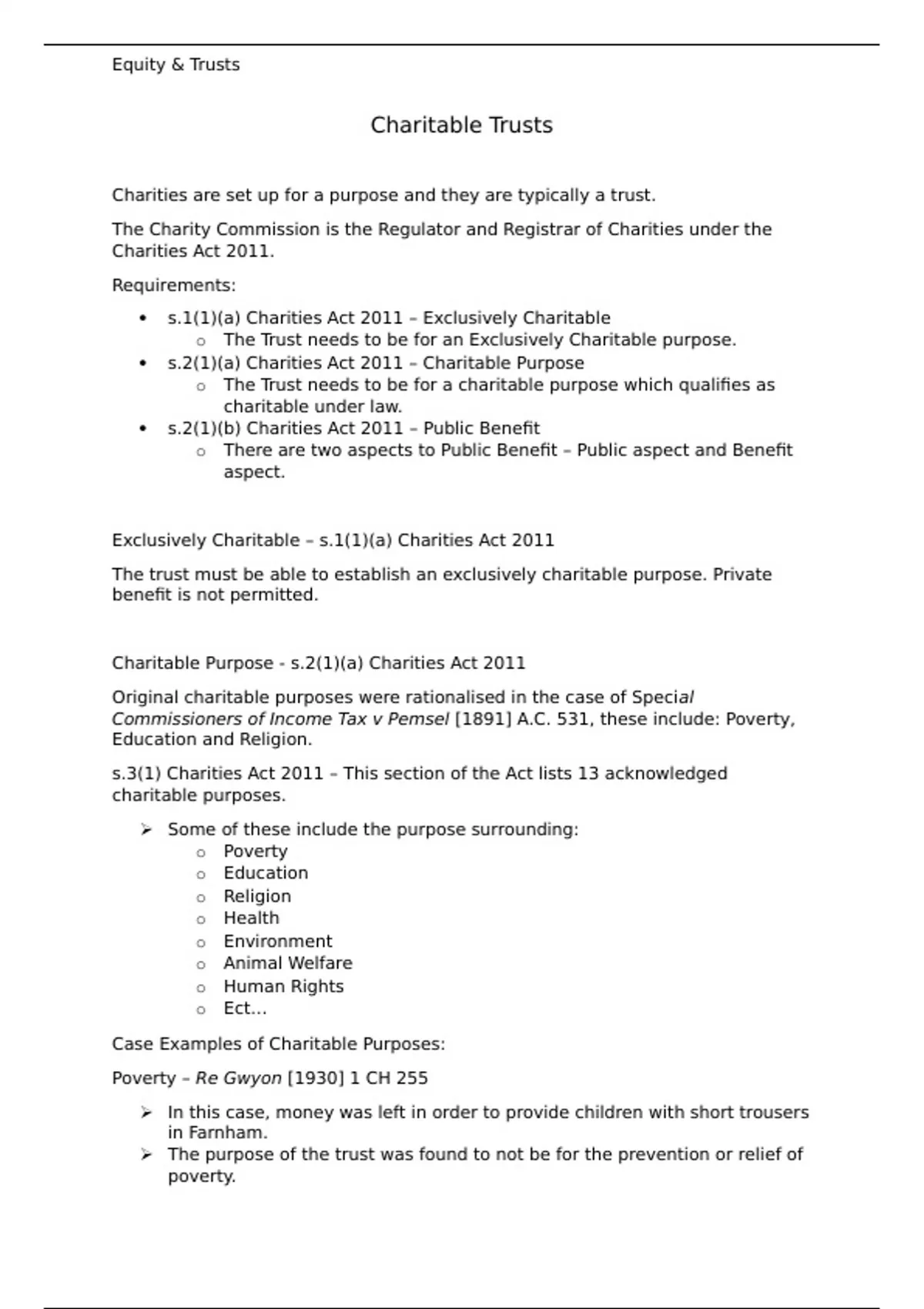 Exclusively Charitable – s.1(1)(a) Charities Act 2011