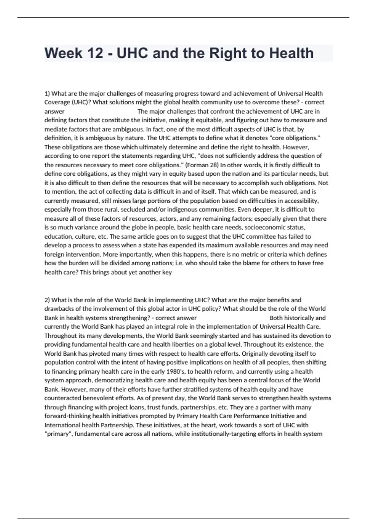 Week 12 - UHC and the Right to Health Study Guide With Practical Answers.