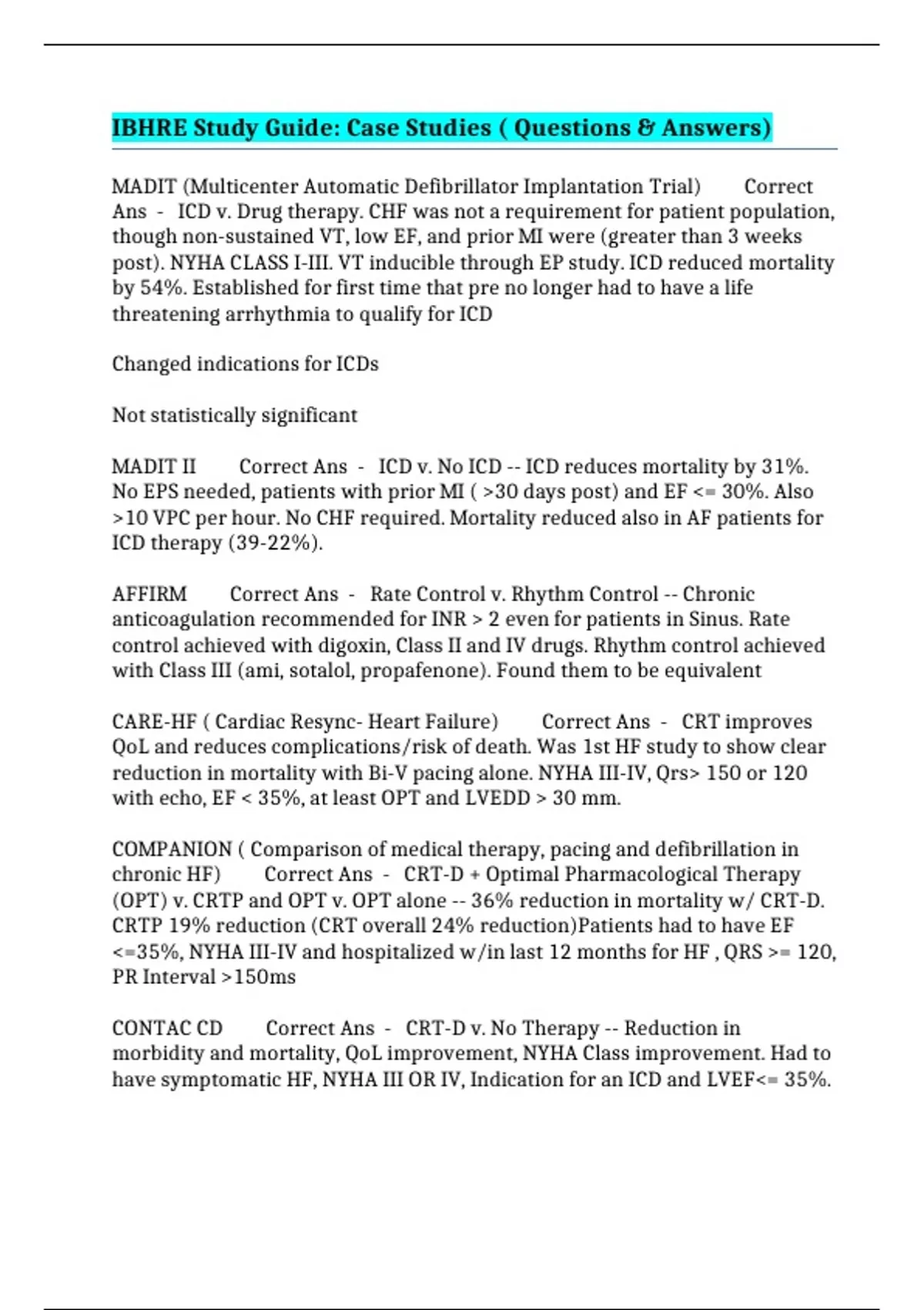 IBHRE Study Guide: Case Studies ( Questions & Answers)