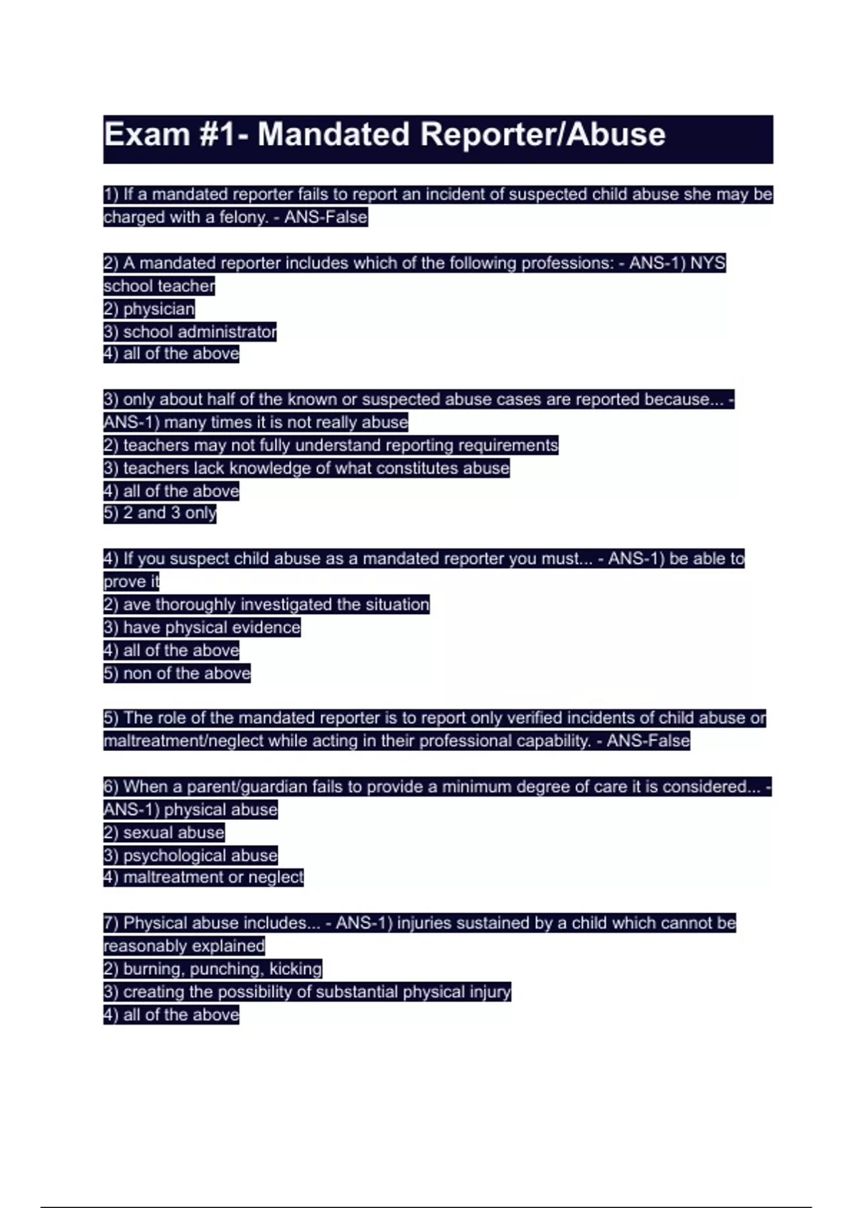Exam #1- Mandated Reporter/Abuse