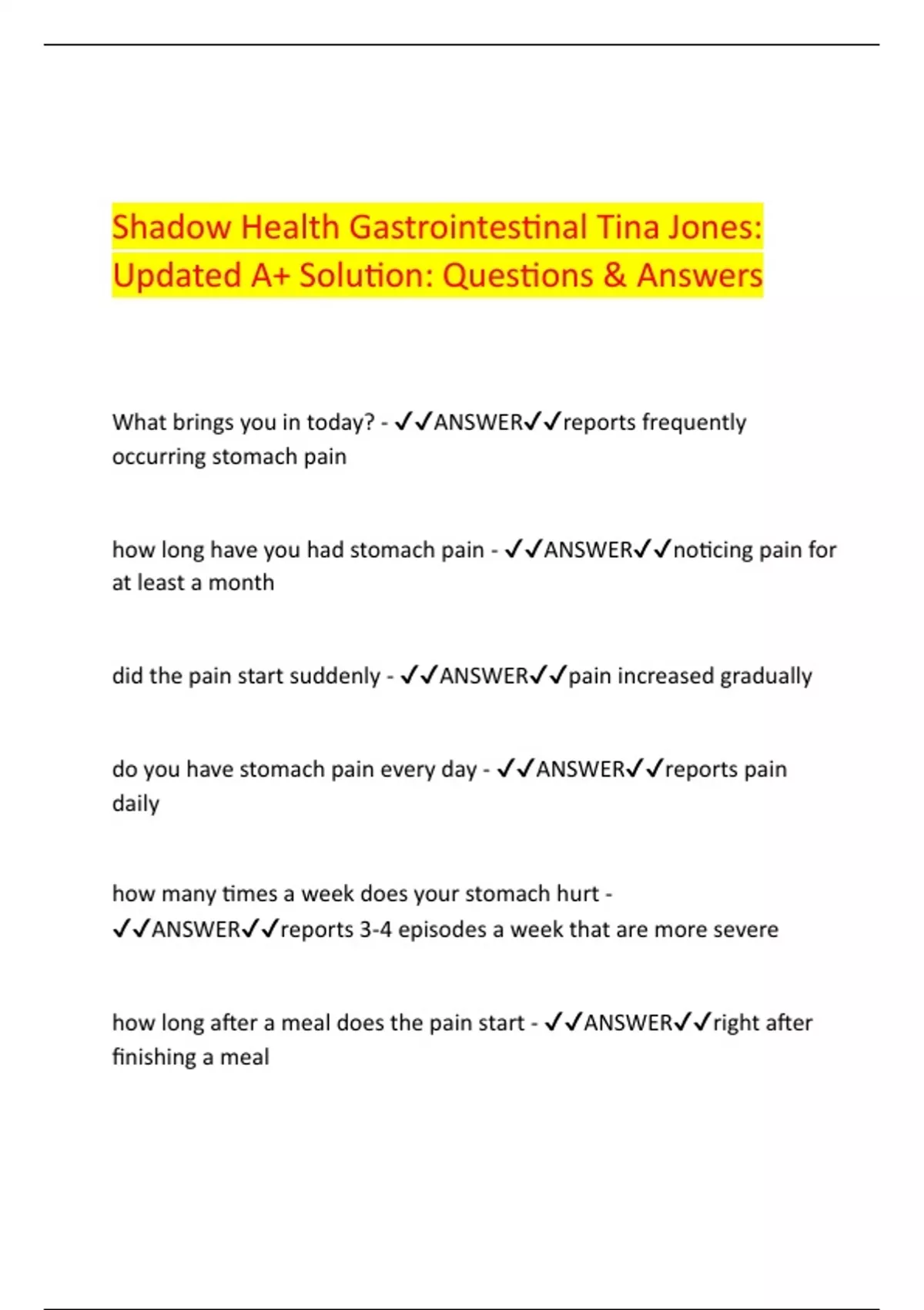 Shadow Health Gastrointestinal Tina Jones: Updated A+ Solution: Questions & Answers