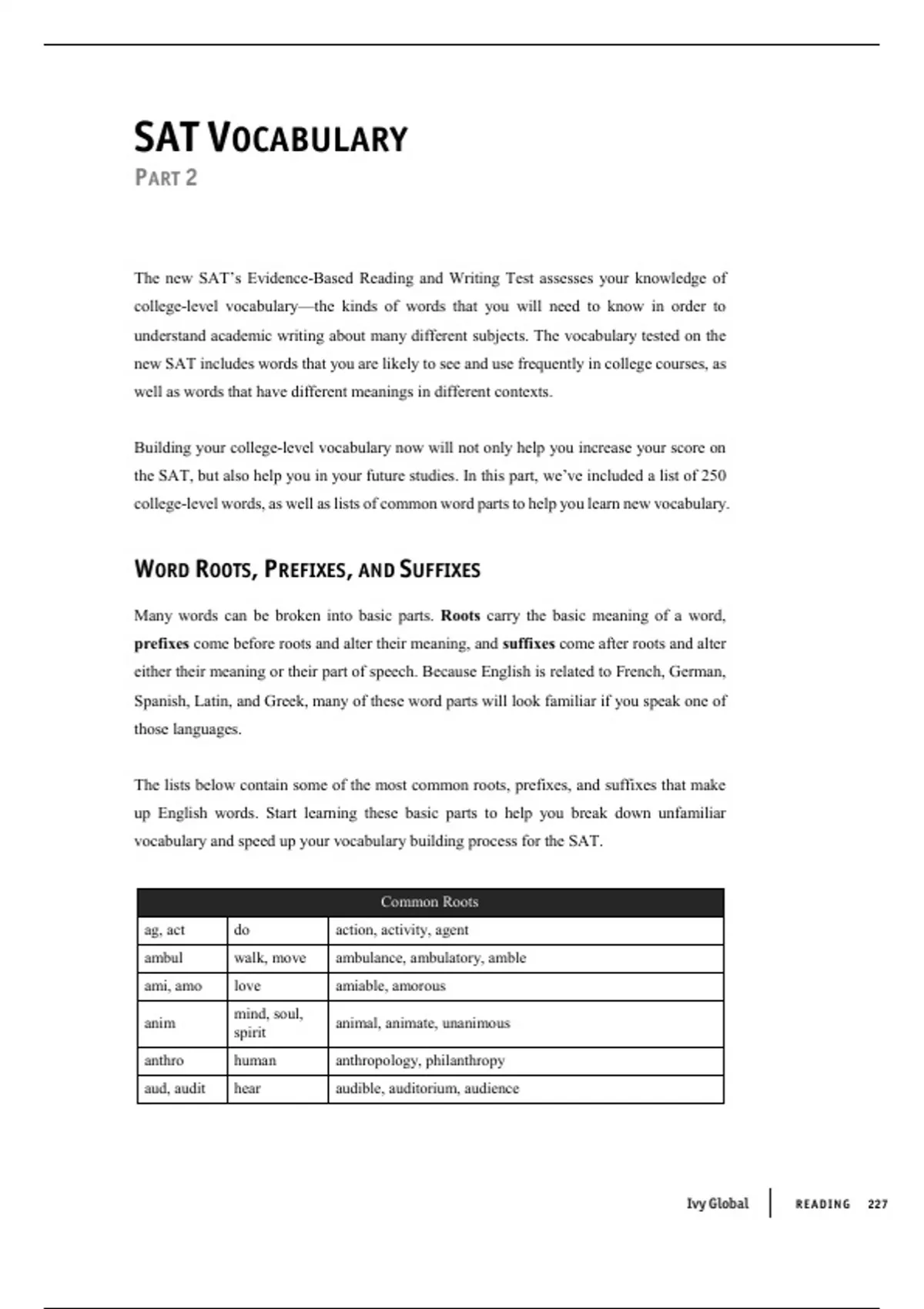 college-level words, as well as lists of common word parts to help you learn new vocabulary.