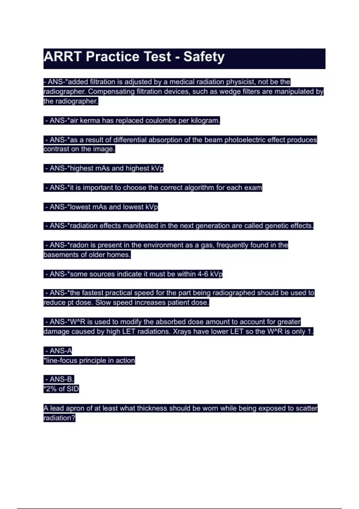 - ANS-*the fastest practical speed for the part being radiographed should be used to