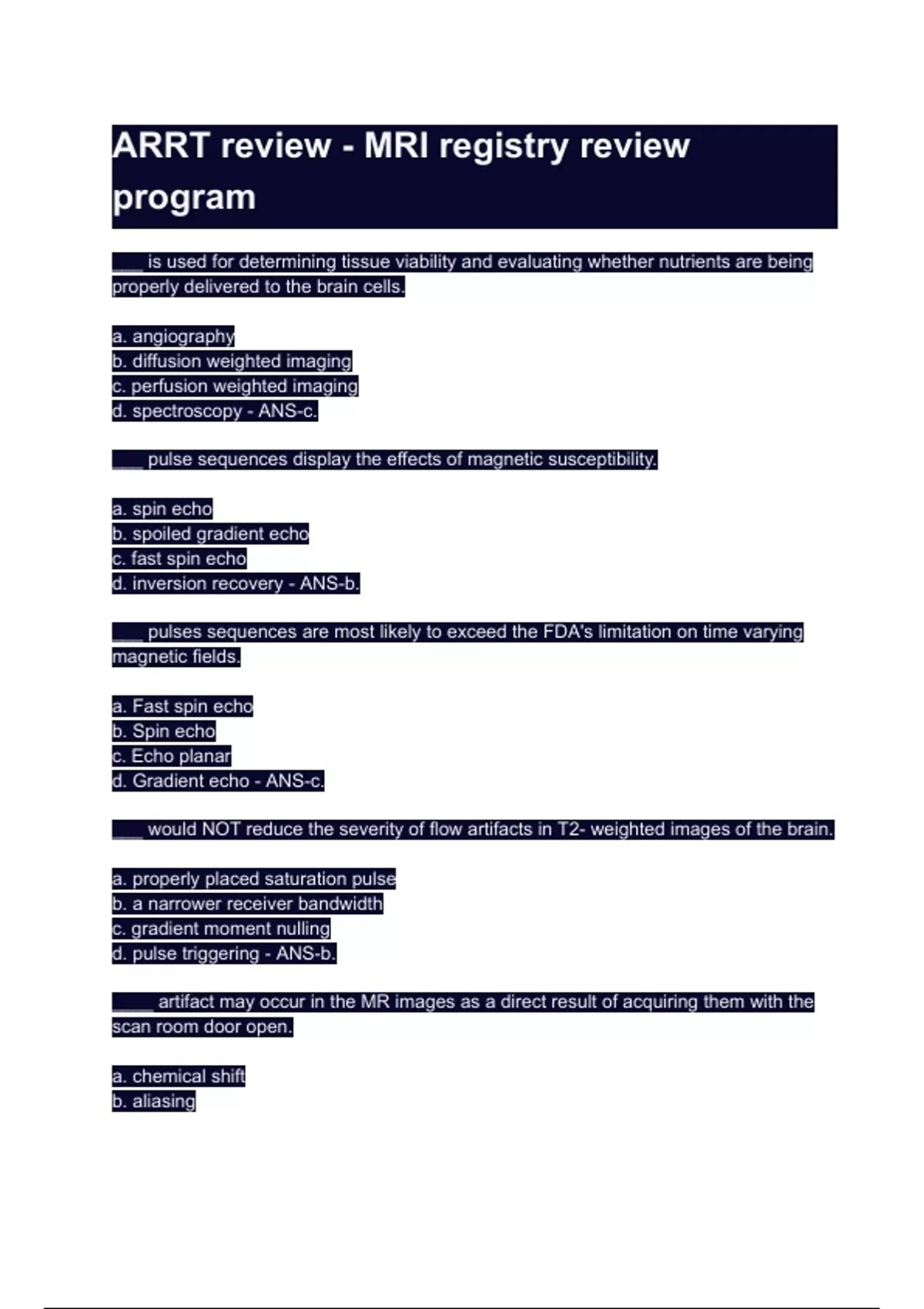 ARRT review - MRI registry review