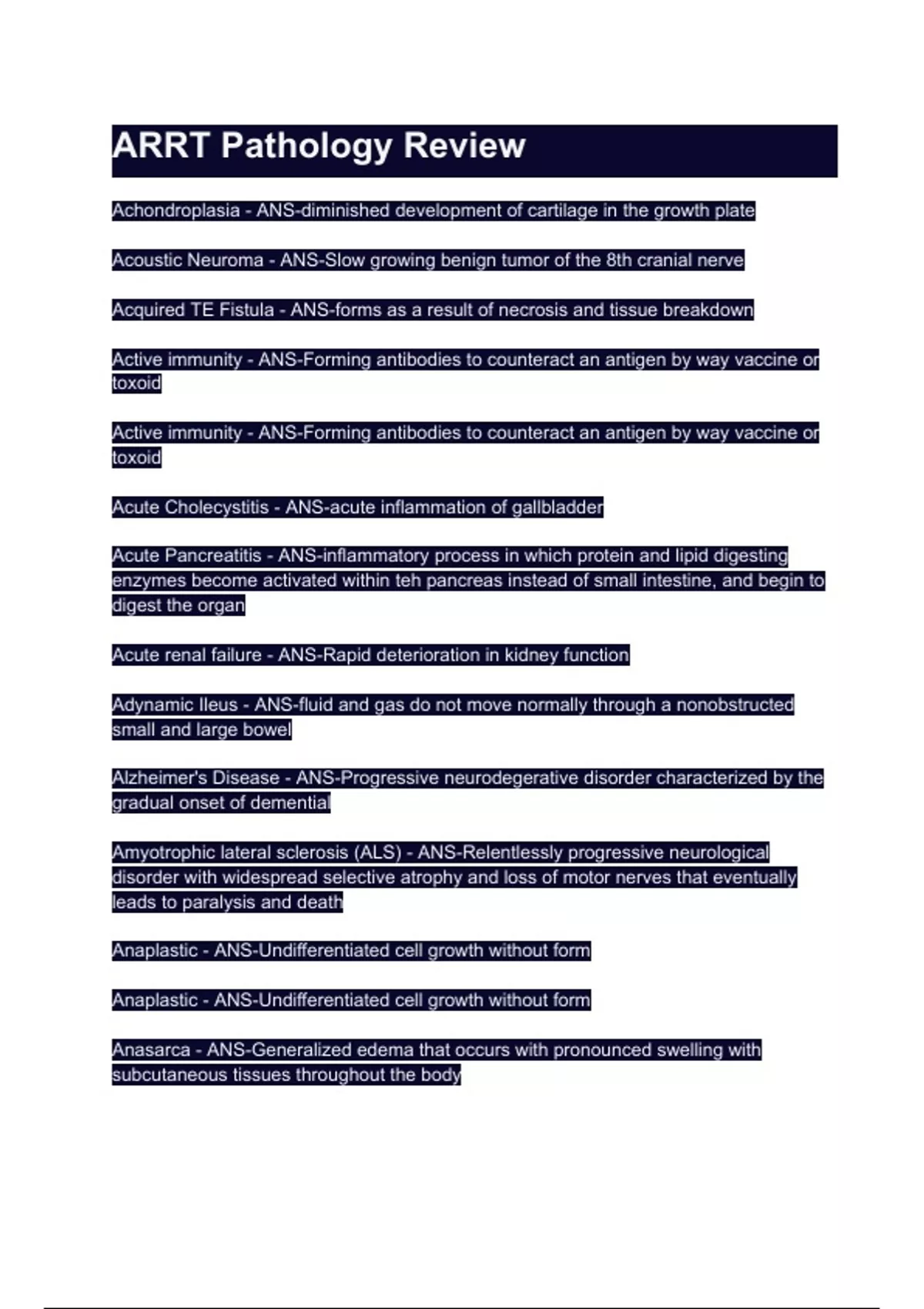 ARRT Pathology Review