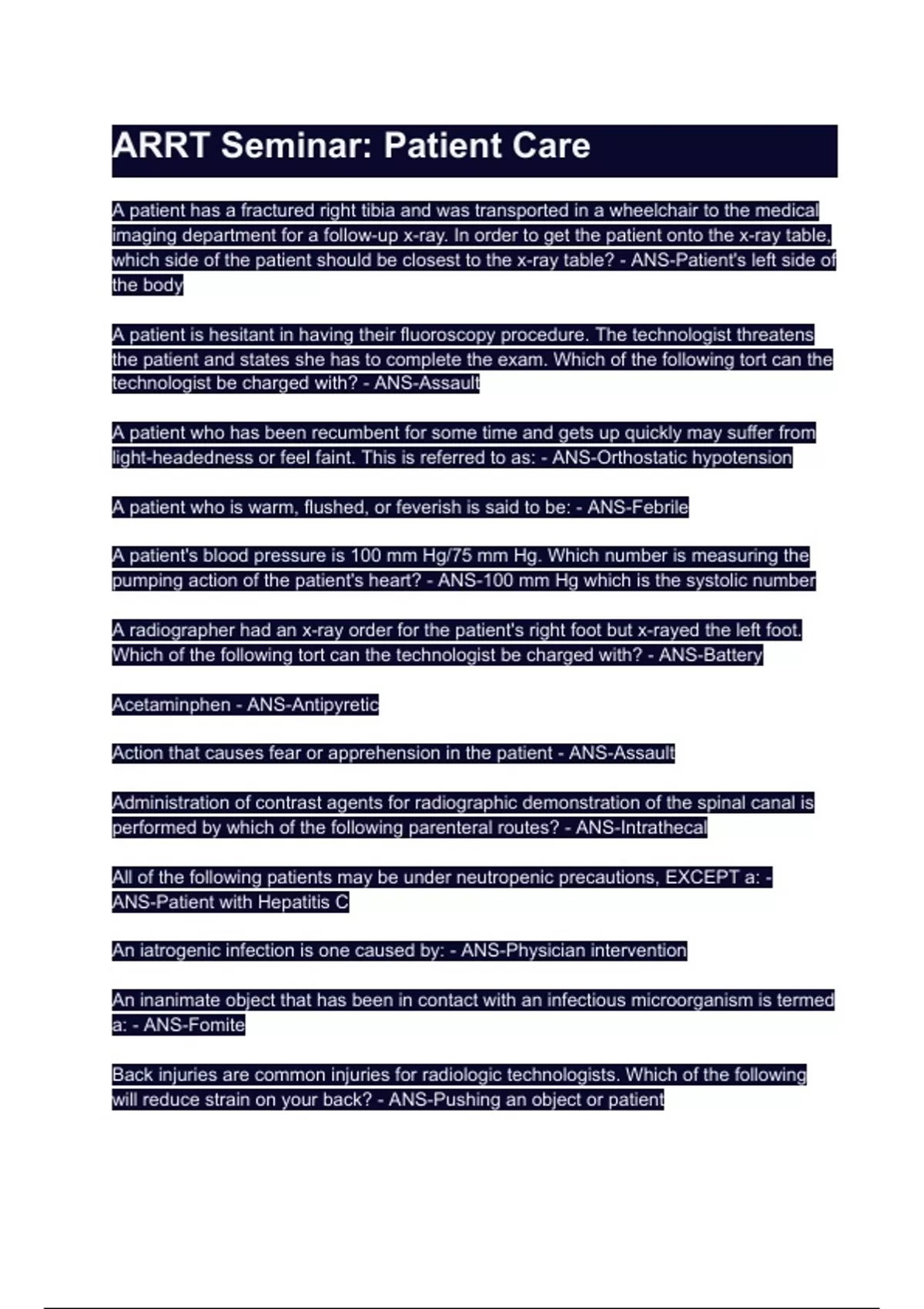 ARRT Seminar_ Patient Care