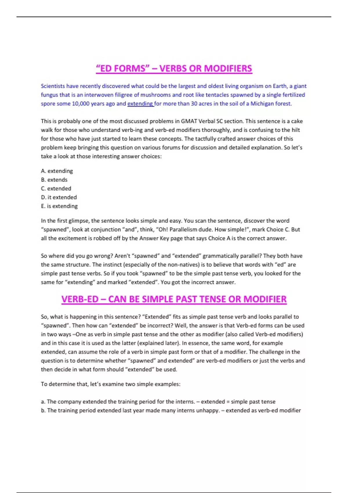 a. The company extended the training period for the interns. – extended = simple past tense