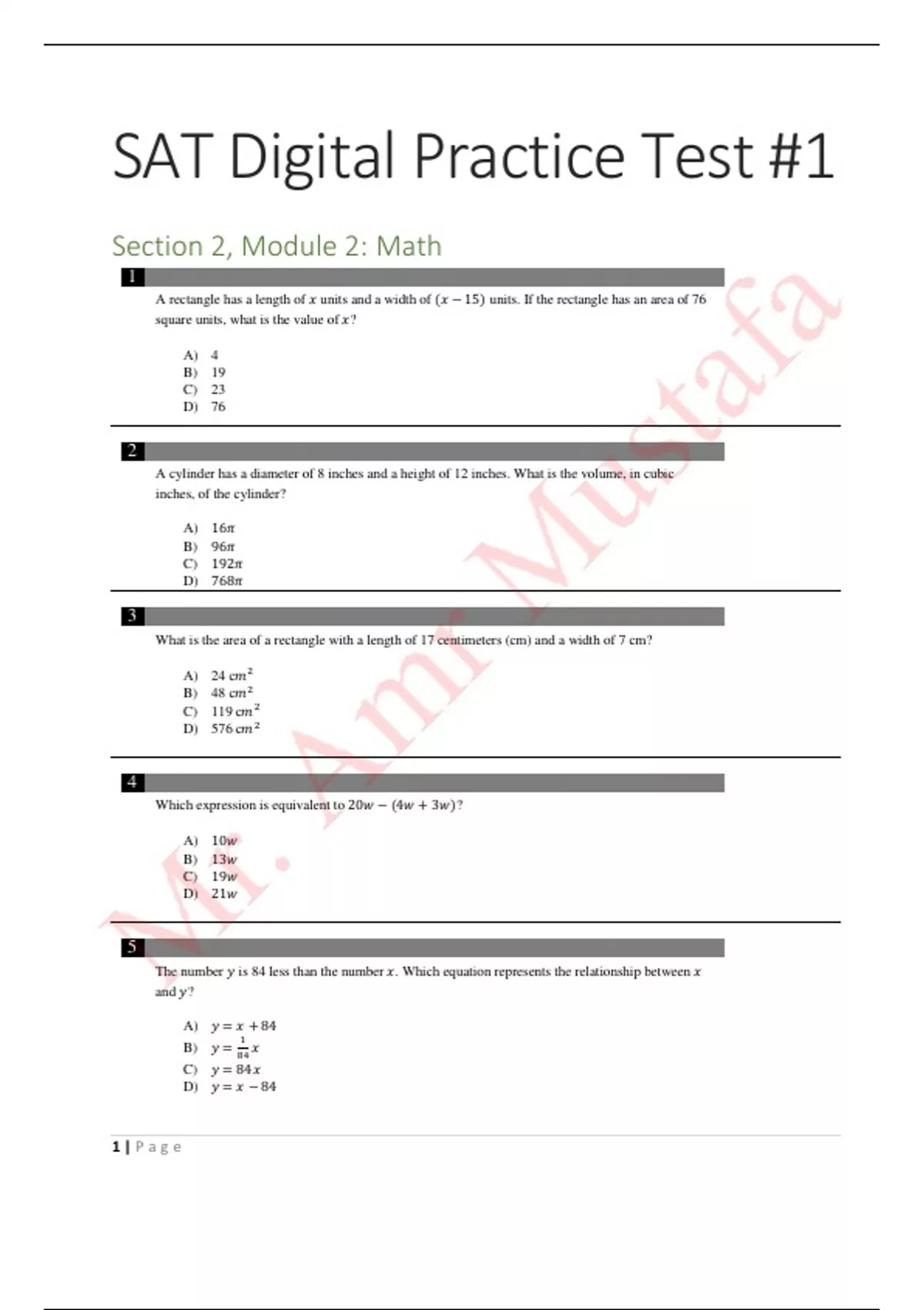 SAT Digital Practice Test 1 (Section 2-Module 2-Math) (1)
