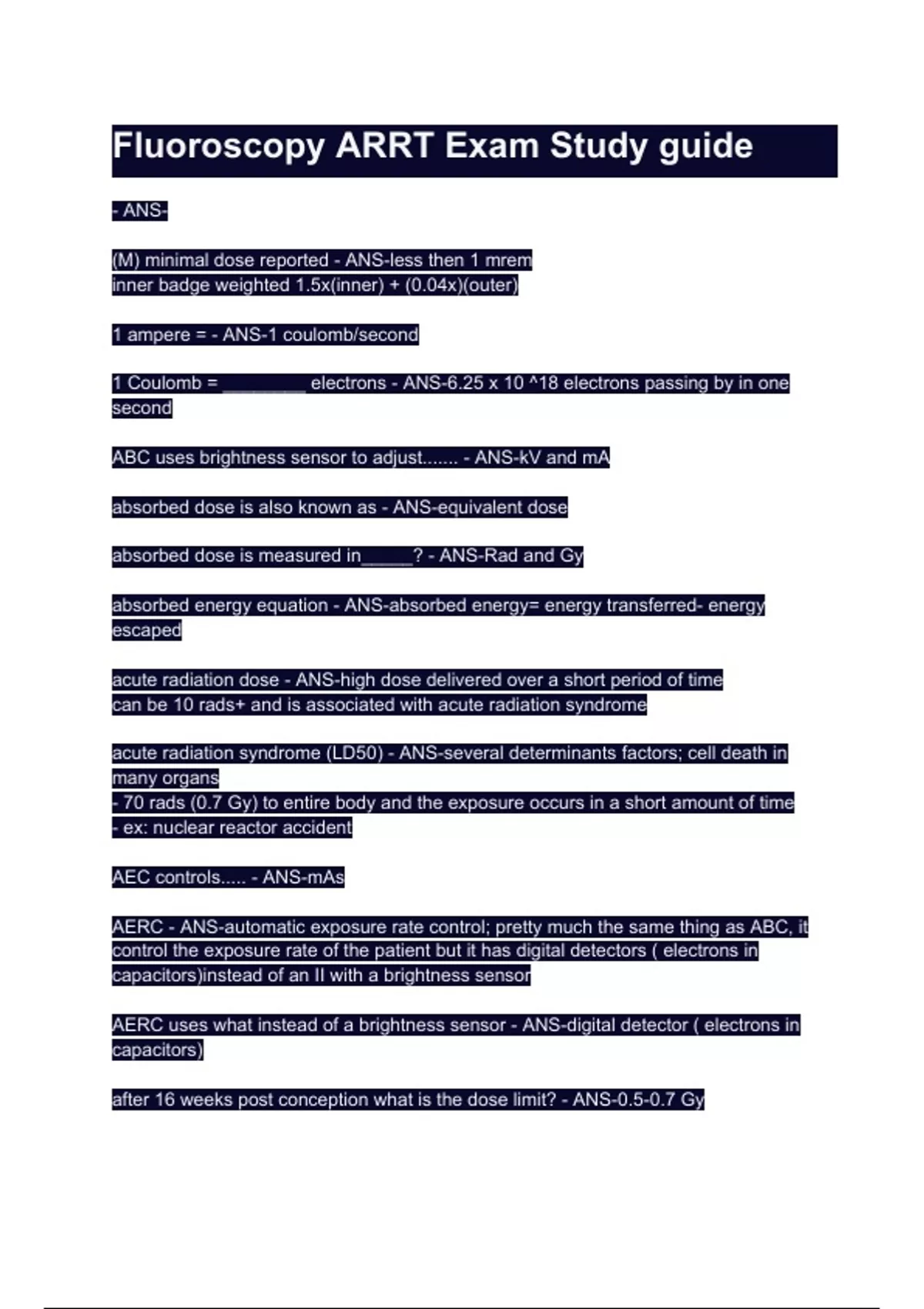 Fluoroscopy ARRT Exam Study guide