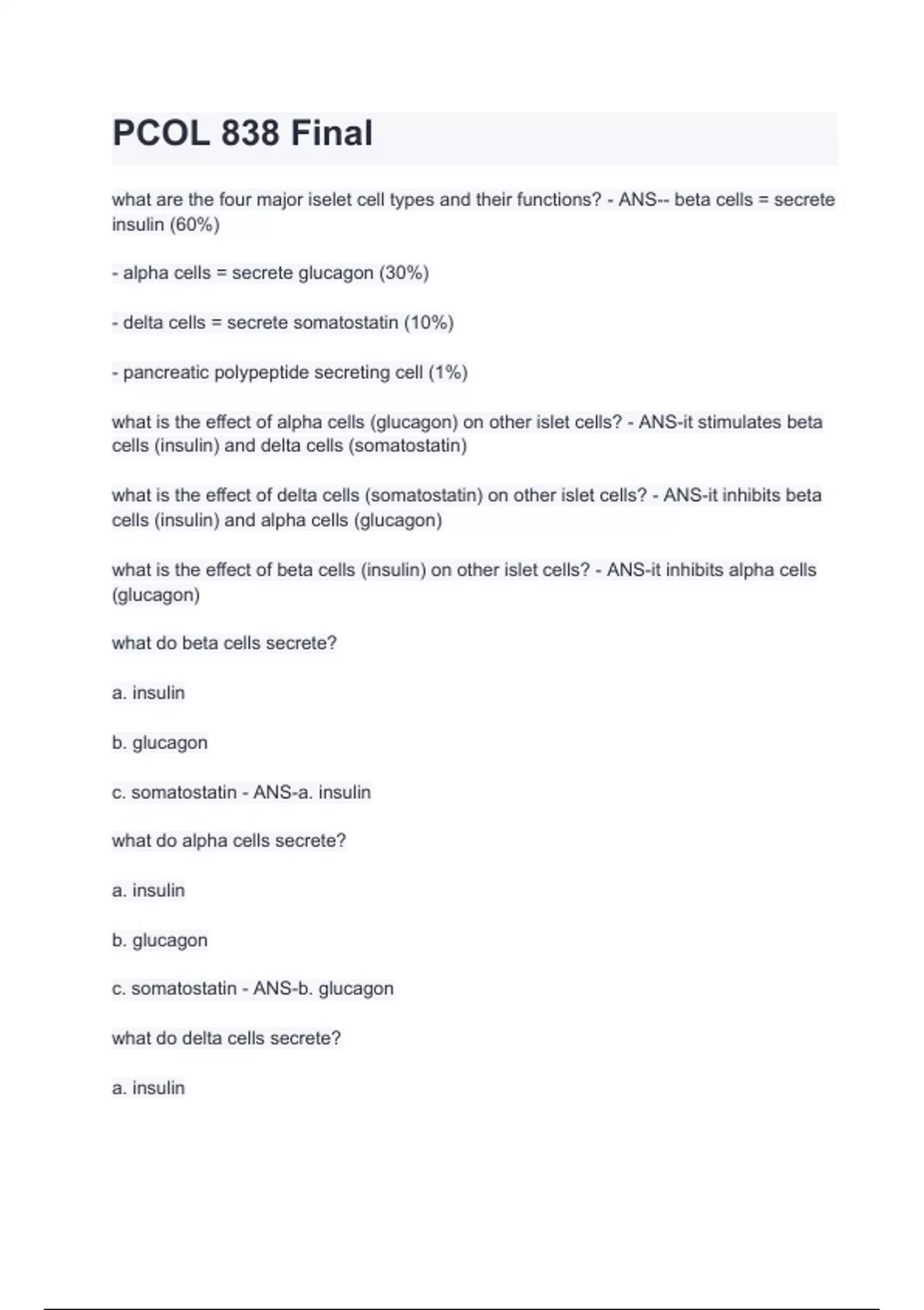 what are the four major iselet cell types and their functions? - ANS-- beta cells = secrete